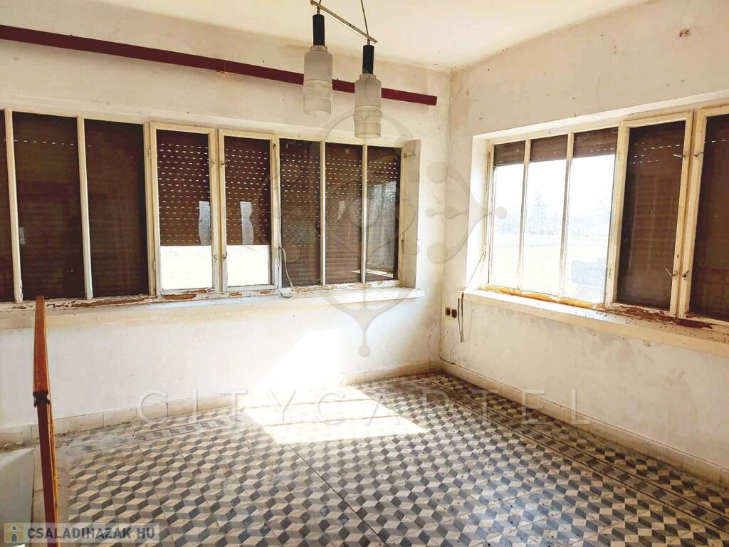 A csendes alföldi kisváros centrumától néhány percnyire, családias hangulatú utcában, felújításra szoruló, kétszintes családi házat kínálunk eladásra. Az 1970-es években épült, kiváló statikai állapotú épület masszív, csúsztatott zsalus technológiával készült falai 150 nm-es hasznos alapterületű lakóteret zárnak közre. A ház fölszintjén található, két autó számára is alkalmas garázsból egy 50 nm-es, 1+1 szobás, összkomfortos lakás nyílik. Az emeleten elhelyezkedő 3 tágas, napfényes szobához konyha, kamra, előszoba, fürdőszoba és WC kapcsolódik. Az ingatlan fűtéséről hagyományos cserépkályhák gondoskodnak. A családi ház a szigetelést, elektromos- és vízvezetékek felújítását, nyílászárók és burkolatok cseréjét követően kényelmes, meleg otthont biztosíthat nagyobb családok, vagy akár két generáció számára is. A tekintélyes méretű, 2.317 nm-es telek gazdálkodásra is kiváló lehetőséget kínál, de parkosított udvar és kert kialakítására is alkalmas lehet.