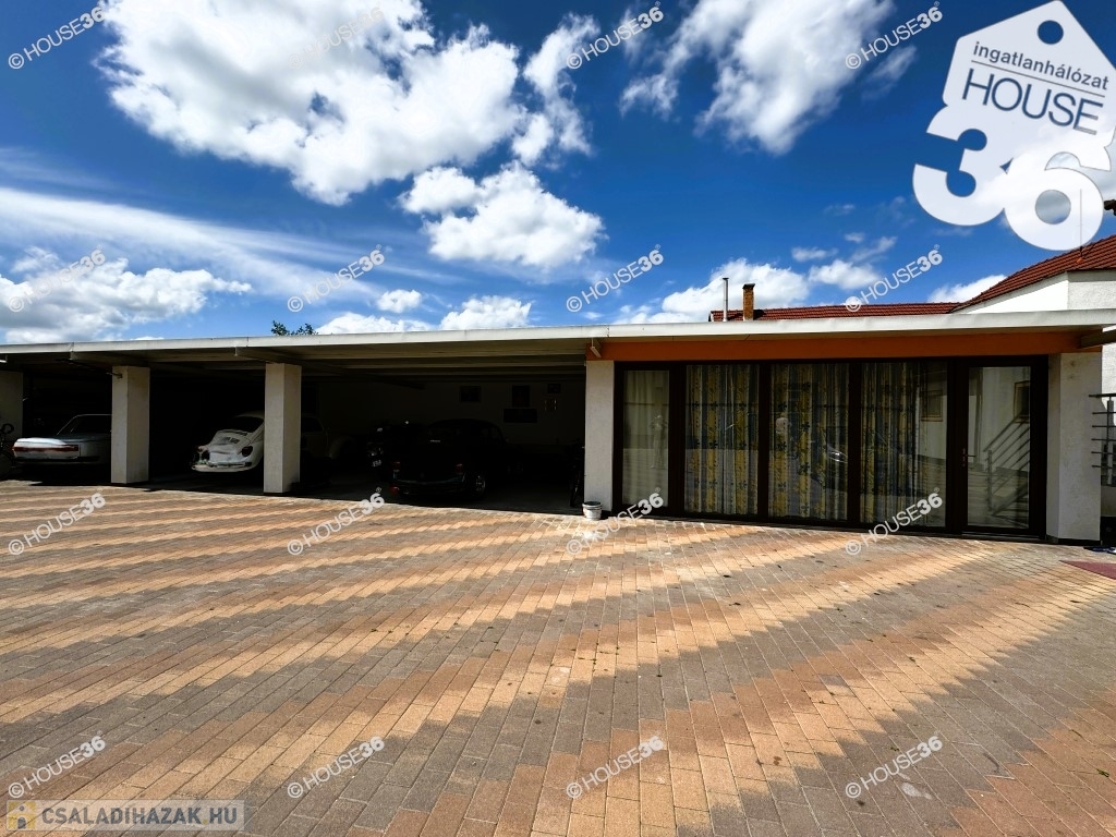 Kapu és parkolás: kovácsoltvas elektromos kapu biztosítja a biztonságot és a kényelmet, a térkövezett belső parkolóban pedig 4 állásos fedett gépkocsibeálló található. Az épület előtt 5 állásos parkoló lett kialakítva.