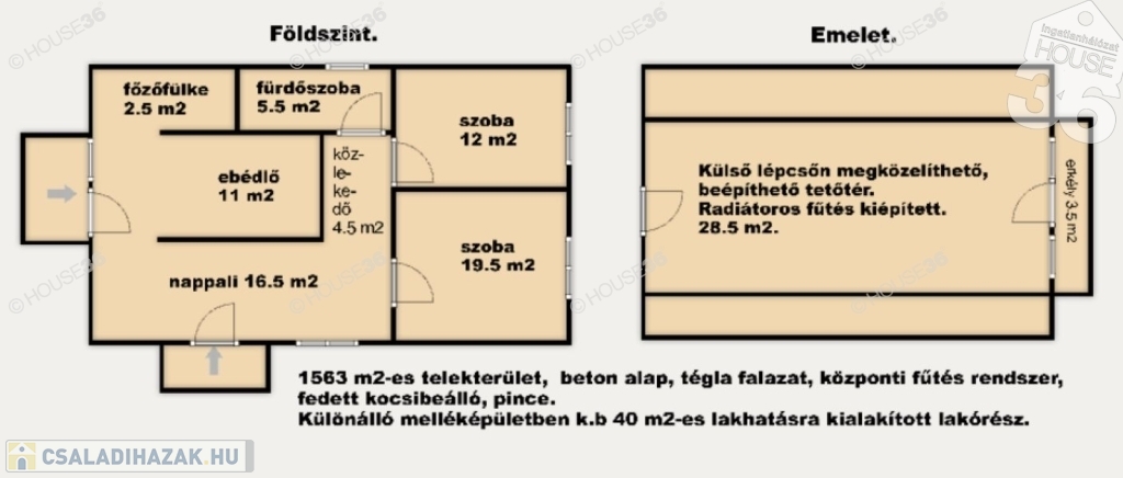 - 1563 m2-es telekterület, különálló felújítandó lakőrész k.b: 40 m2.