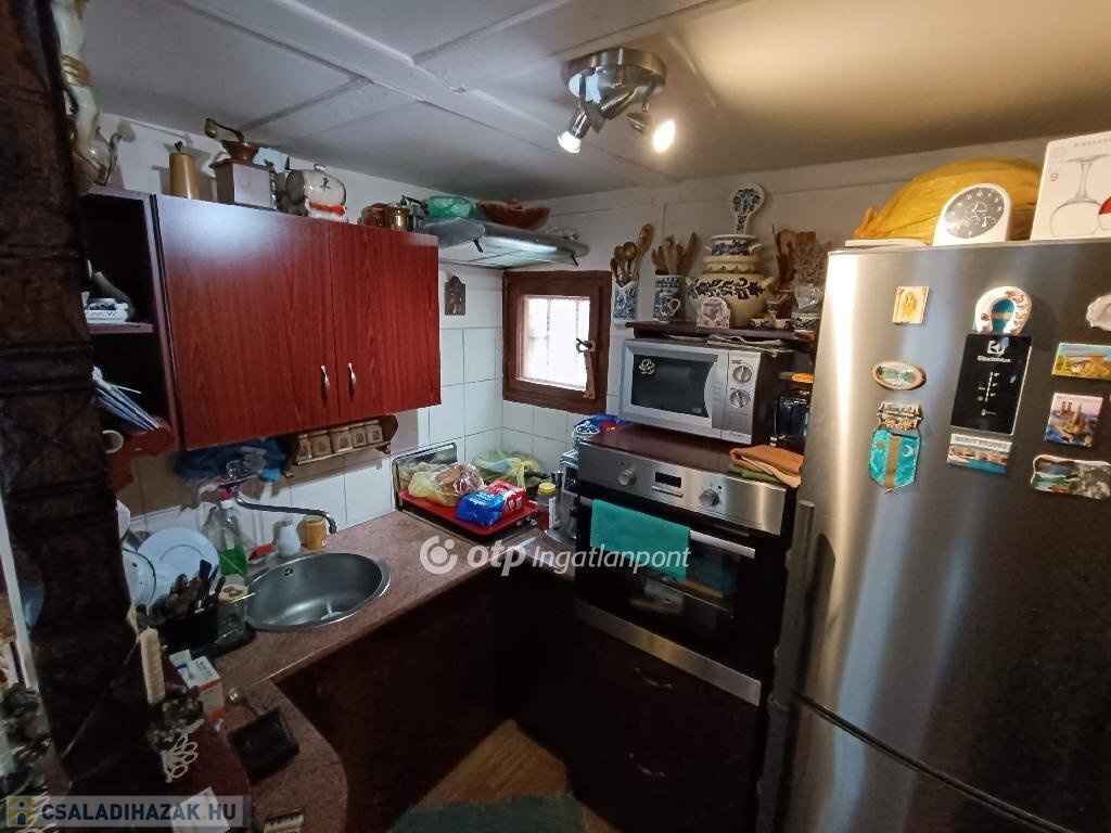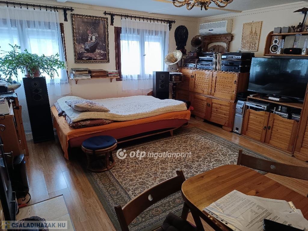 A ház és az utca között egy 32 m2-es, téliesített, fűthető, lakható faház található