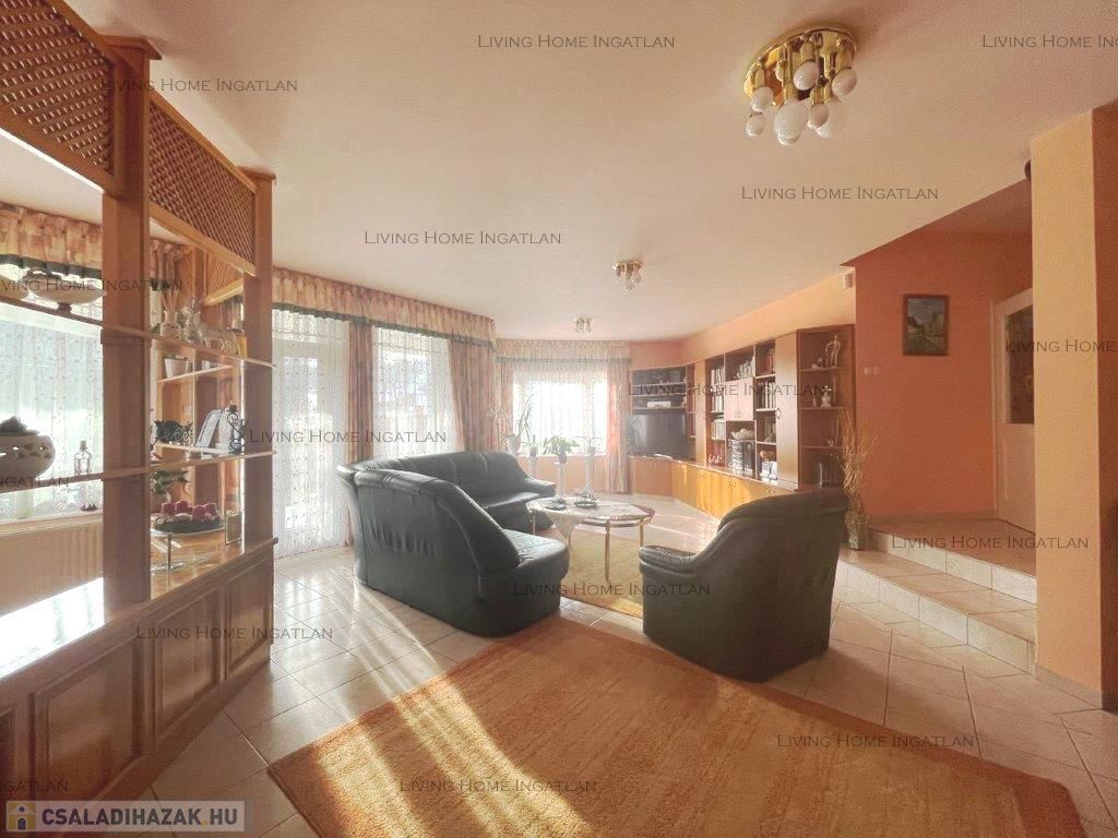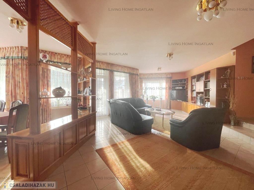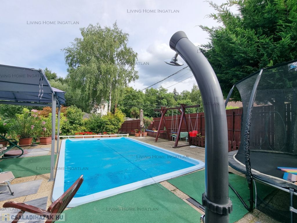 Eladó egy saroktelken lévő, 388 nm-es, háromszintes nagy ház gondozott telekkel. Az ingatlan központi helyen, kedvelt utcában helyezkedik el, tágas, akár 4 autó parkolási lehetőséggel a ház előtt. A nagy telek 840 nm-es, a kertben 7 méteres, fűthető úszómedence, gépesített konyhával felszerelt szaletli, grillező, 3 tárolásra alkalmas kerti kisház, valamint veteményes, pázsit, fák és virágok, találhatóak. További 3 autó parkolására van lehetőség telken belül, a ház előtt.