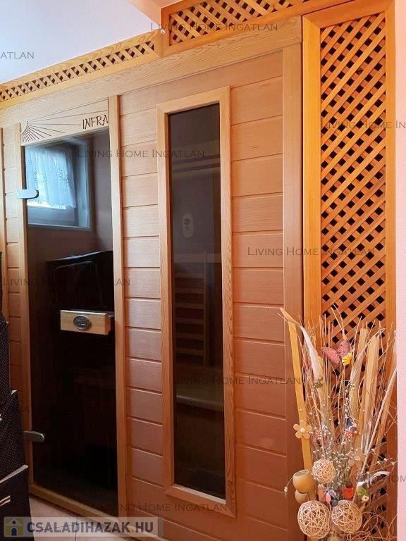 A földszinten és az emeleten padlófűtés és radiátor is van, a meleget kondenzációs kazán biztosítja, illetve a nappali kandallója. A szobák klimatizáltak. Szúnyogháló, redőny minden nyílászárón van.