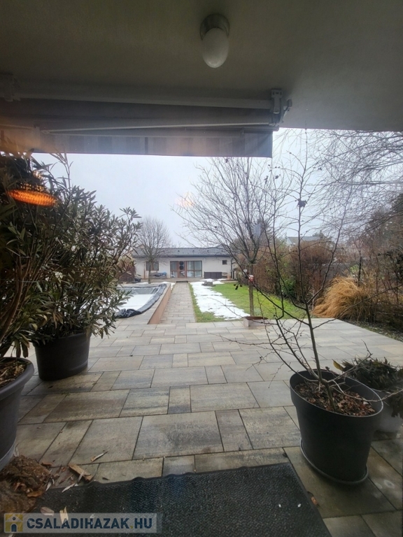 A kert szakember által megtervezett, gyönyörűen karbantartott, automata öntöző rendszerrel felszerelt. Az épített medence fűthető, és ellenáramoltatott.