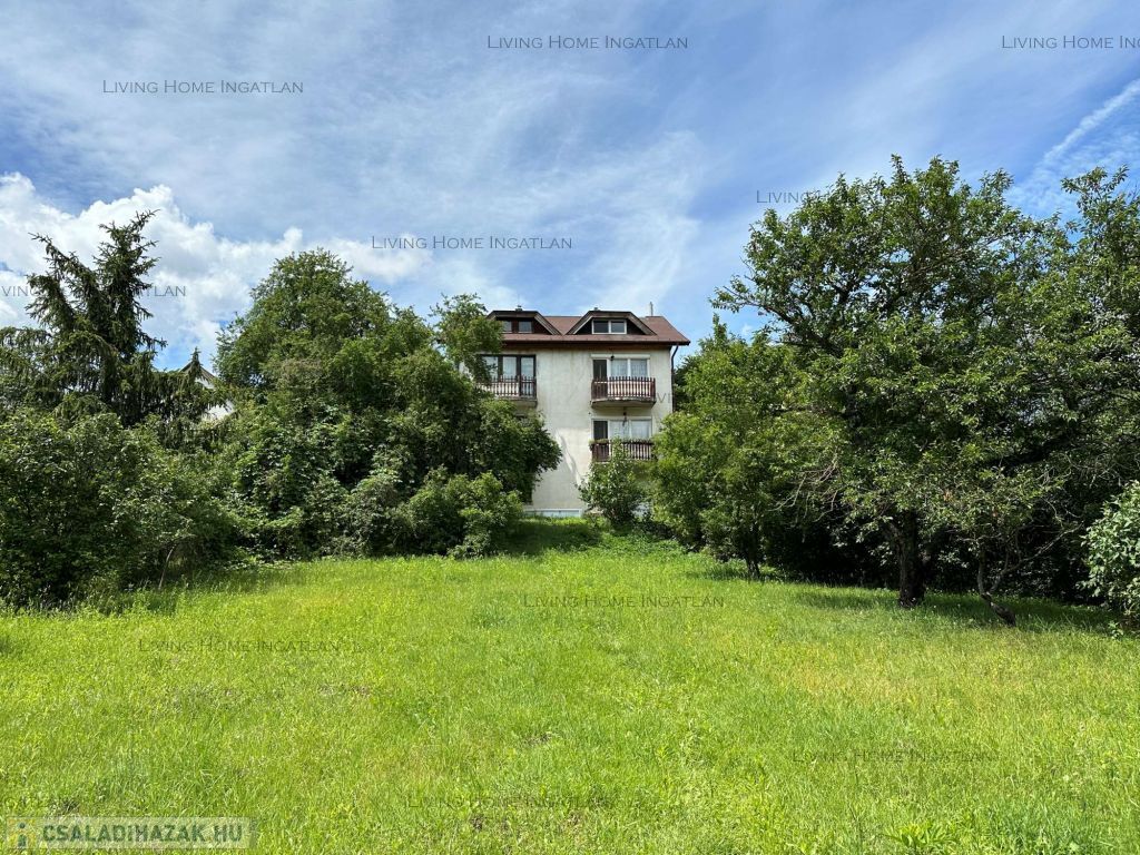 Centrally located, close to everything, but still in a quieter environment. The semi-detached house is undivided common property, but it can be arranged with a lawyer. The large plot is gently sloping, at the end of the stream flowing, due to its favorable location is suitable for relaxation, recharging. The new owner can also create a beautiful park, kitchen garden or social space. The multi-storey building is built with a staggered floor plan, the balconies of the rooms offer a 180 degree panoramic view of the surrounding landscape and nature. The building is in medium condition, in need of renovation. The plot has space for a few cars, but there is also a single garage at the bottom of the building. The rear garden side could be converted to create an unrivalled garden connected living space.