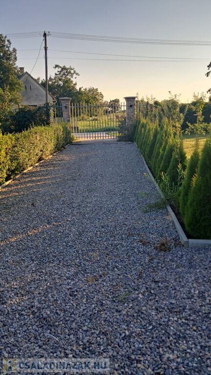 Telek: Az udvar tágas és gondozott, virágokkal, cserjékkel és bokrokkal díszített, teljes egészében körbekerített terület, amelyet rendezett szegéllyel határolt járda tesz még ápoltabbá. A hatalmas kert számtalan lehetőséget kínál a szabadidő eltöltésére: ideális hely a pihenéshez, grillezéshez, kertészkedéshez vagy akár kisebb gazdálkodáshoz is. A telken dupla garázs és fatároló található, a hátsó bejáratnak köszönhetően pedig az ingatlan autóval erről az oldalról is kényelmesen megközelíthető, lehetővé teszi lakókocsi beállását is, így a terület vendégek fogadására vagy hosszabb tartózkodásra is kiválóan alkalmas. A kert hátsó részén gondosan ápolt gyümölcsfák sorakoznak, tovább fokozva a természetközeli, vidéki atmoszférát.