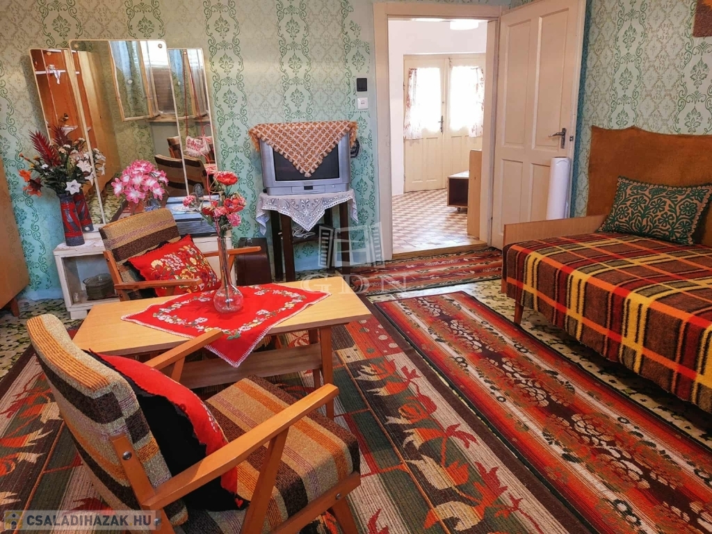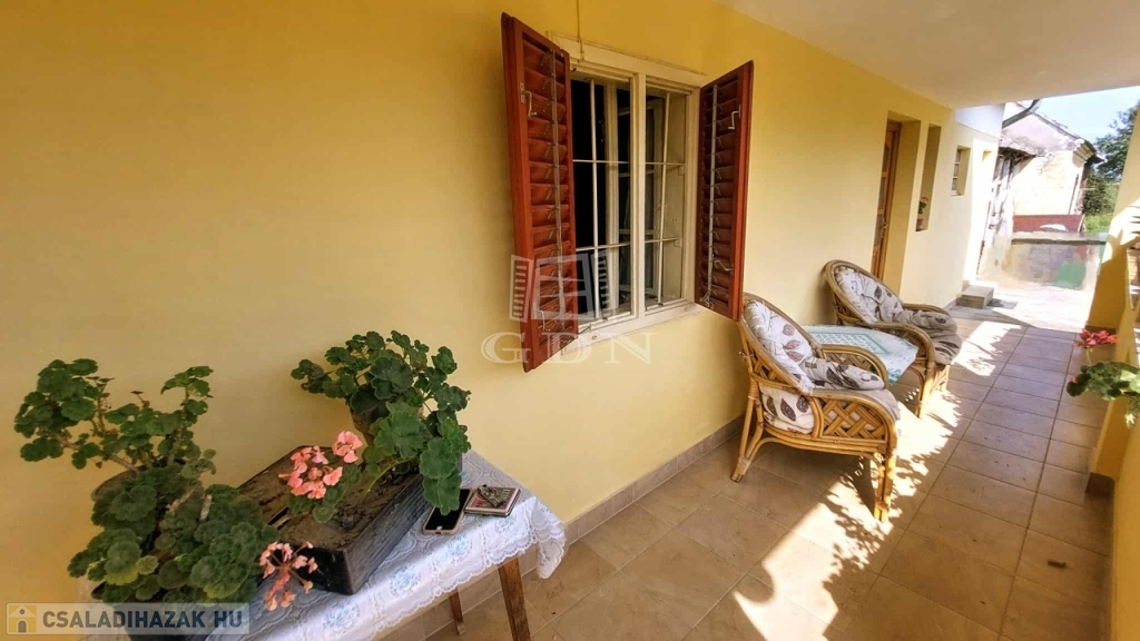 A faluban, nyugodt utcában található ez a háromszobás, 80 m2-es, közepes állapotú, teljesen lakható, de igény szerint felújítandó ház. Az utcában sok német illetve angol családnak van gyönyörűen felújított háza. Az ingatlanhoz több gazdasági épület és istálló is tartozik, a nagy telek (6962 m2) pedig számtalan lehetőséget kínál: alkalmas lehet gazdálkodásra, de akár ló- vagy más állattartásra is.