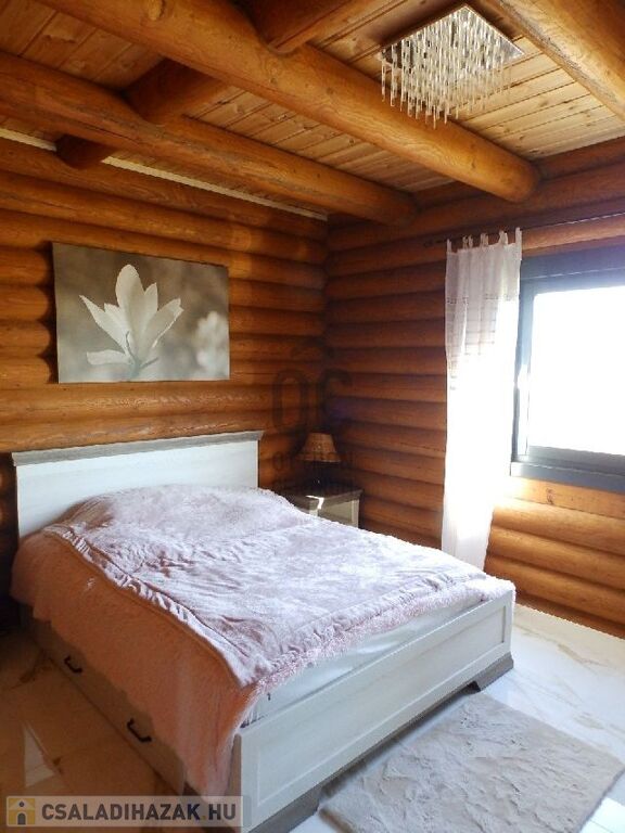 A faépítésű ház meleg hangulata, modern burkolatokkal és szaniterekkel egészül ki.