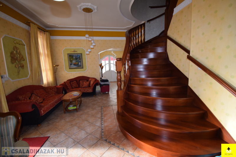 Az 1.800 m²-es, gondozott telken álló ház két elkülönülő szintje a többgenerációs együttéléshez is tökéletes megoldást kínál.
