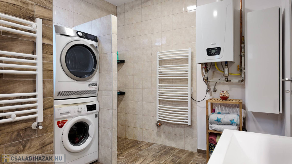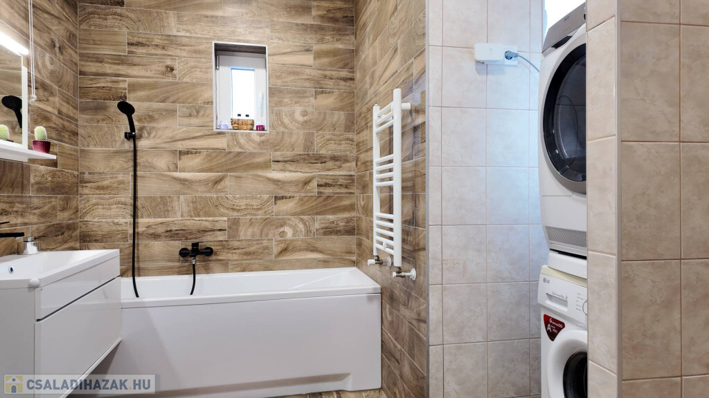 A teljes konyha-étkező és a kádas, tusolós fürdőszoba külön wc-vel szintén a tavalyi évben került beépítésre!