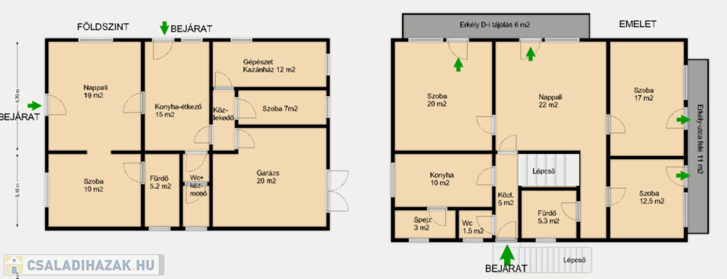 Az alsó és a felső szint teljesen külön bejárattal rendelkezik, így tökéletesen alkalmas több generáció részére, vagy otthoni vállalkozás, munkavégzés céljára.
