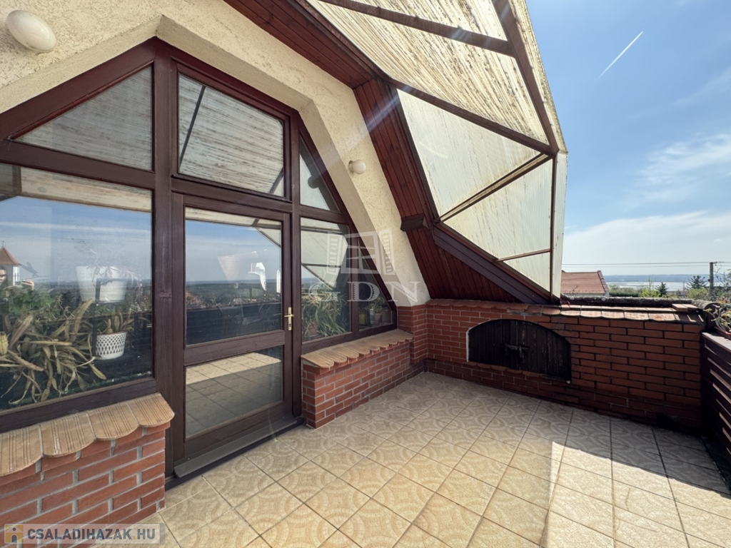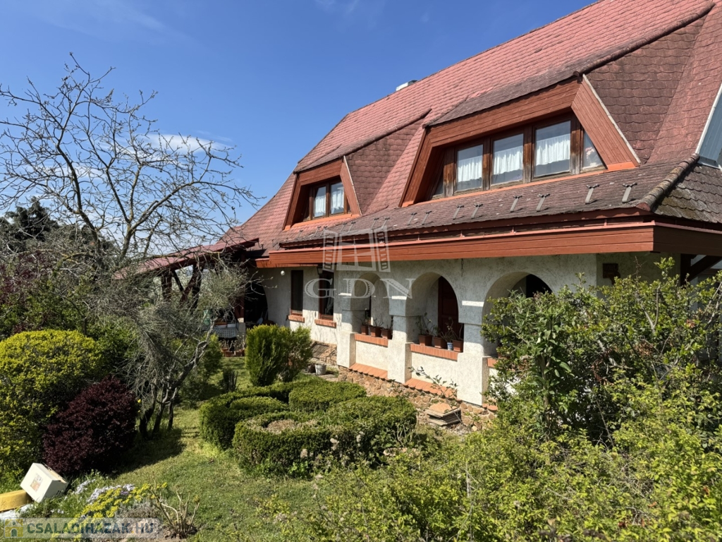 Vh-004412 Sukorón, átmenő forgalomtól mentes, rendezett utcában 235m2 hasznos alapterületű, 3 szintes, impozáns és rusztikus hangulatú, a Velencei-tóra panorámás kilátású családiház 1249m2-es telken parkosított telken eladó!