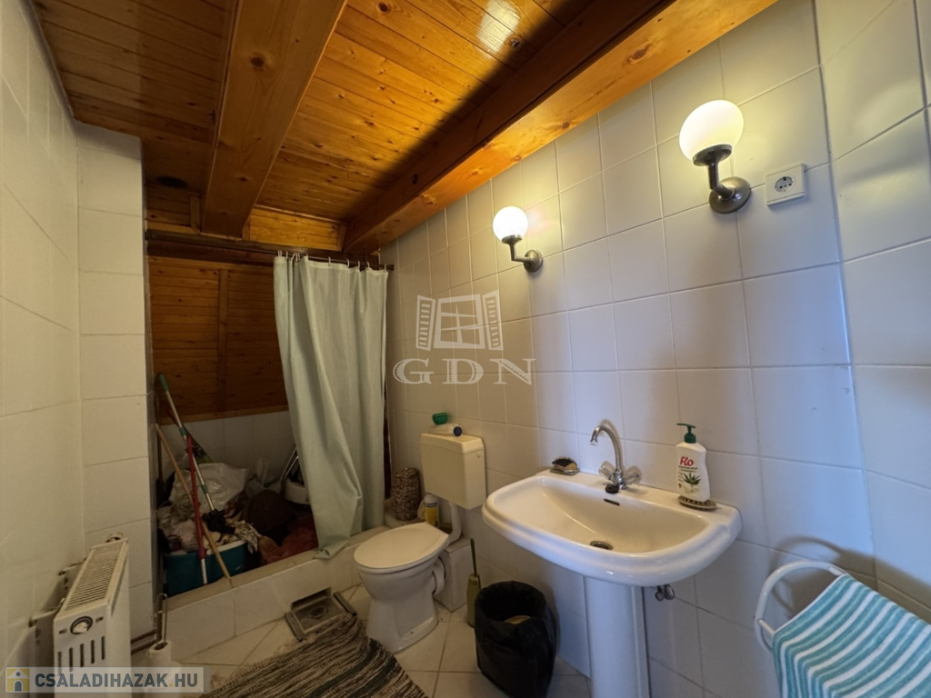 A ház melegét gázkazán biztosítja radiátoros hőleadással, illetve a kellemes komfortérzetről egy egyedi kandalló is gondoskodik.