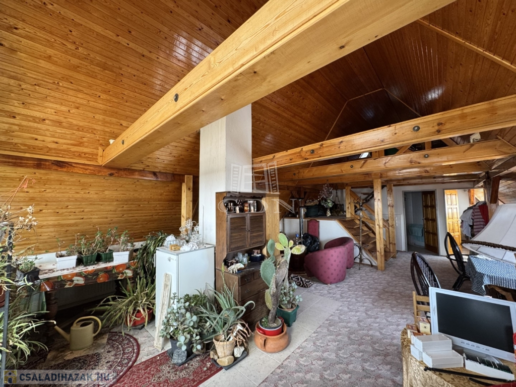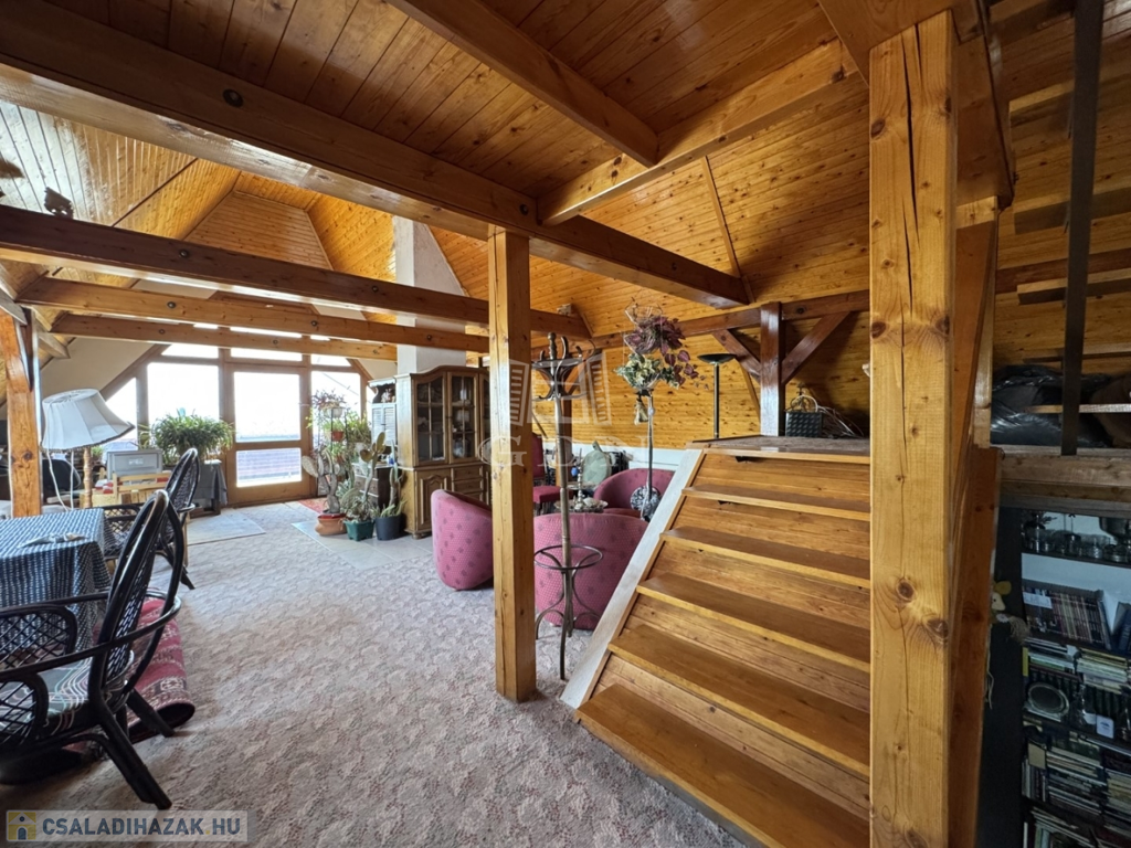 A tetőtér beépített, galériás, lambériás minden része. Fürdőszoba, hálószoba és egy nagy nappali található ezen a szinten. A nappali részből nyílik egy 17m2-es erkély is.