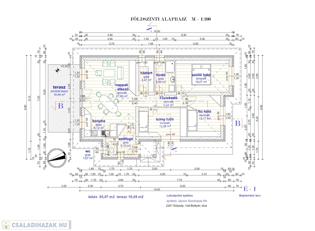Sülysápon, a Vak Bottyán utca 17. szám alatt, csendes és rendezett környezetben kínálunk eladásra egy új építésű, nettó 95 m²-es lakótérrel rendelkező családi házat, amely 720 m²-es telken helyezkedik el.