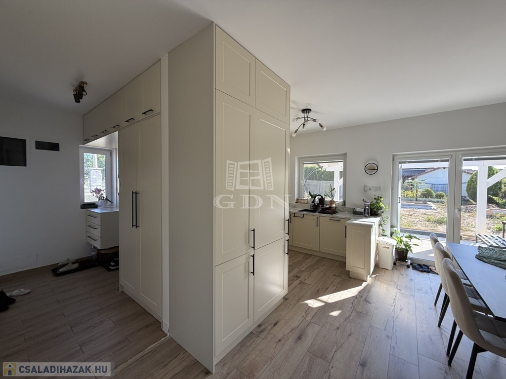 A ház „A” energetikai besorolású, melyet a kiváló szigetelés mellett a monoblokkos hőszivattyúval működő padlófűtés biztosít. A hat légkamrás, háromrétegű üvegezésű nyílászárók gondoskodnak a modern megjelenésről és a hatékony hőmegtartásról, míg a tetőt betoncserép fedi.