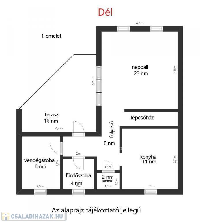 A ház alatt egy 40 nm-es GARÁZS és egy 8 nm-es tároló helyezkedik el.