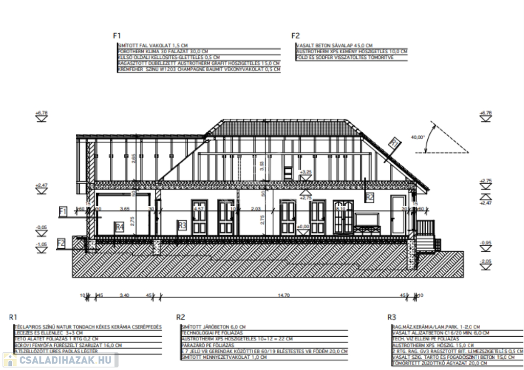 45 cm-es beton sávalapon, a talajon fekvő padozat 15 cm-es austrotherm XPS szigetelést kapott.