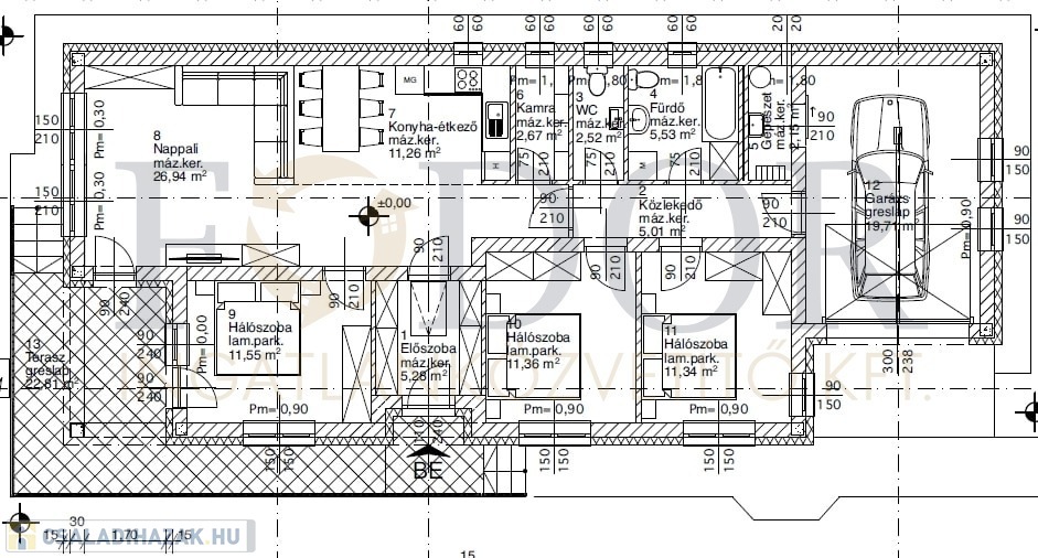 • Nyílászárók: fehér műanyag 6 kamrás 3 rétegű üvegezéssel