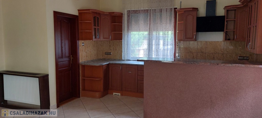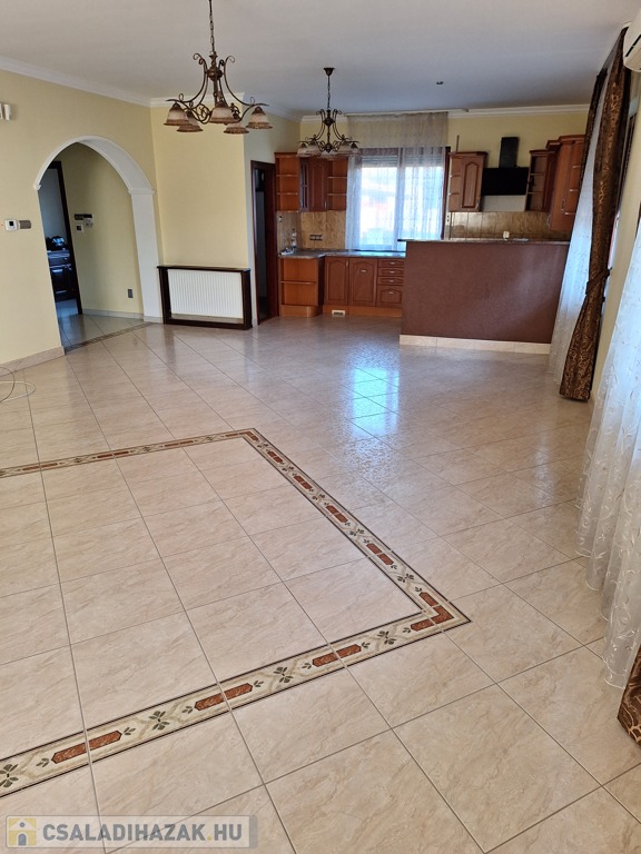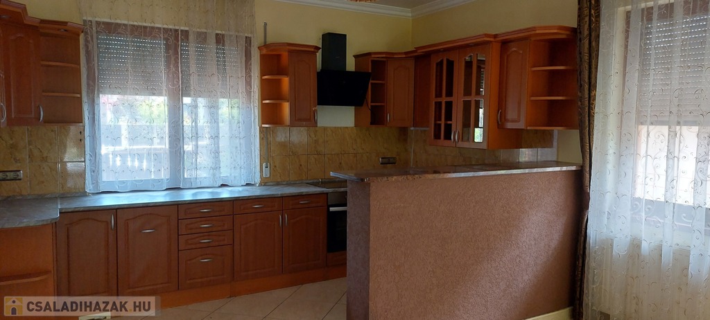 A szuterén-földszint beépítésű, szintenként 150 nm-es ház hatalmas, amerikai konyhás,