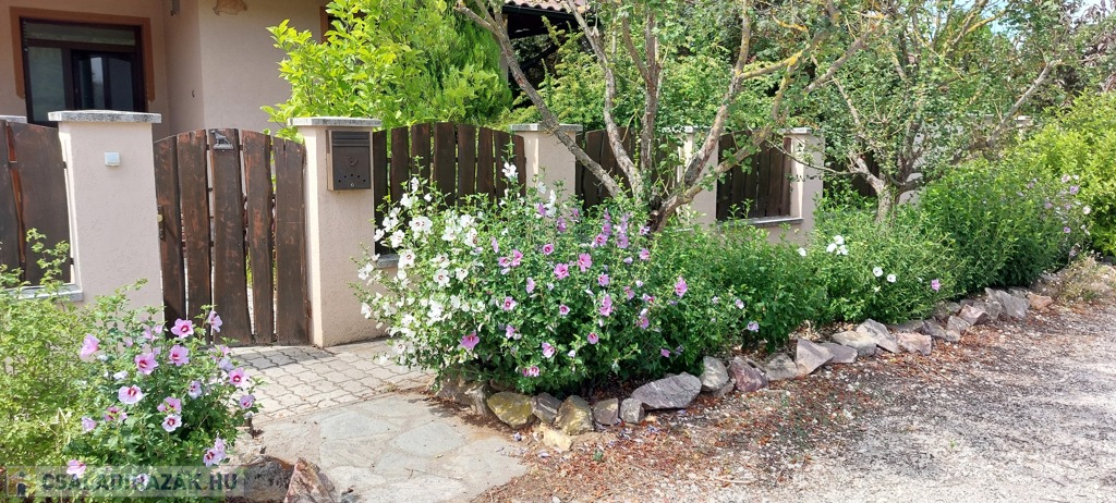 álló magas sövény szegélyezi, néhány fa ad kellemes árnyékot a nyári hőségben.