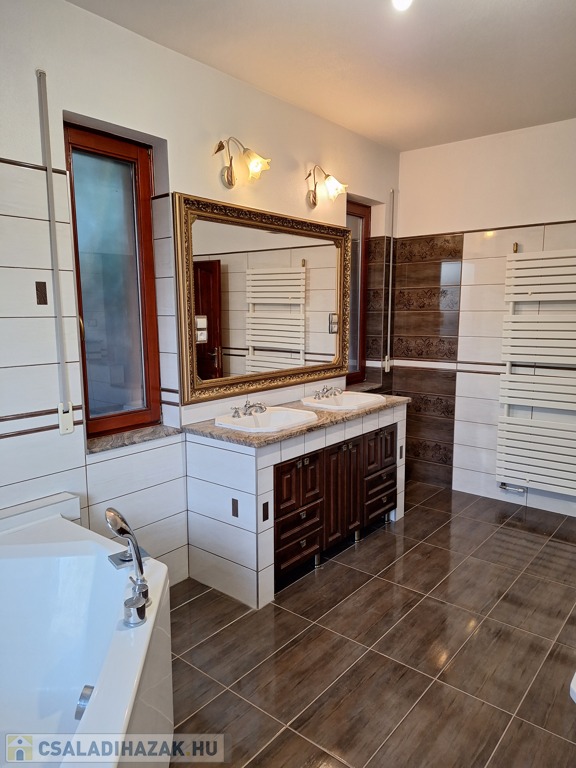 kényelmét három tágas lakószoba, két fürdőszoba és gardrób szolgálja. A szuterén természetes fényt