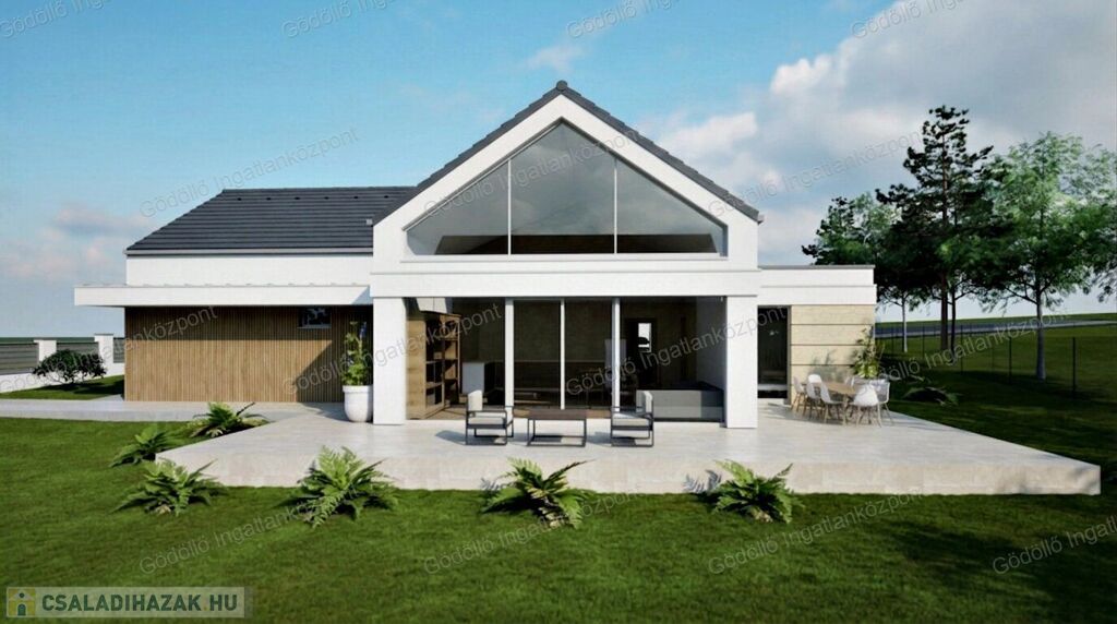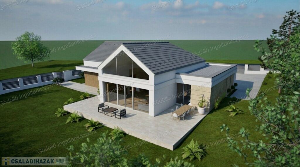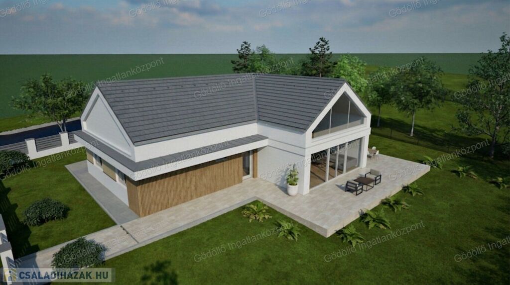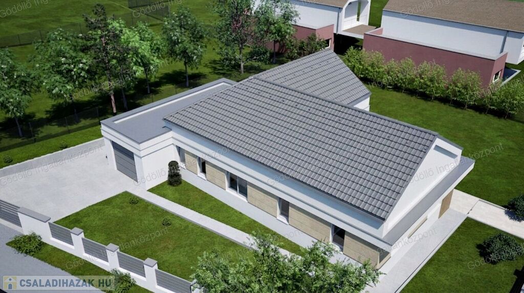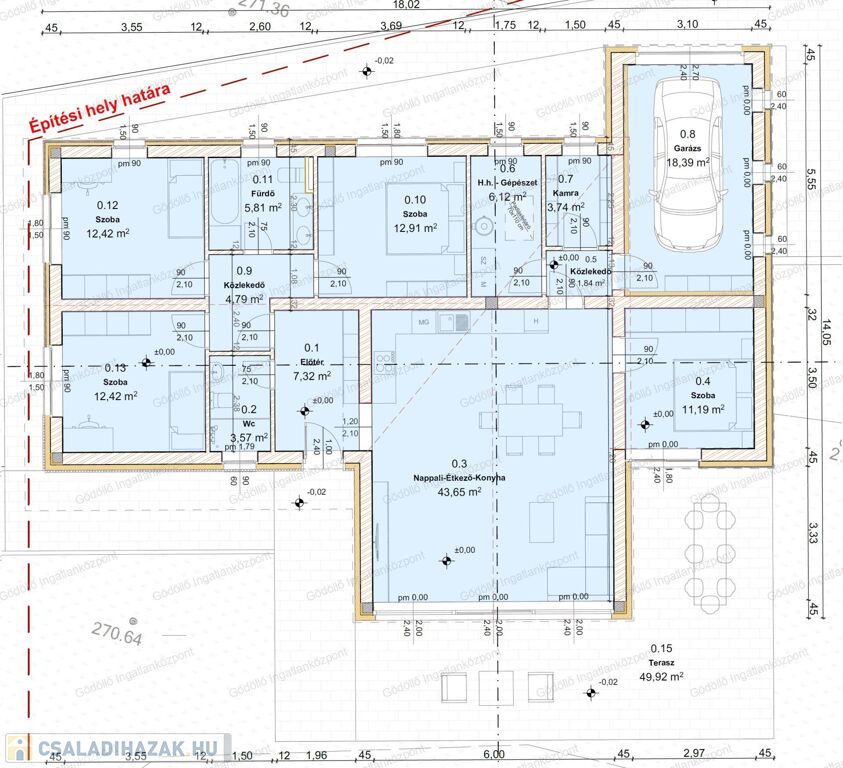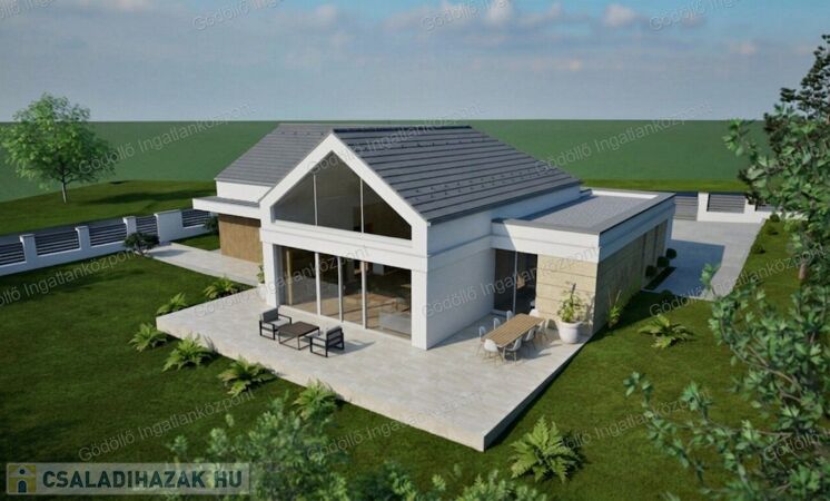 - Előtér, tágas nappali-konyha-étkező, közlekedő, 4 szoba, egy zuhanyzós és egy kádas fürdőszoba, háztartási helyiség-gépészet, kamra, valamint 18,39nm-es garázs és 49,92nm-es terasz kerül kialakításra.