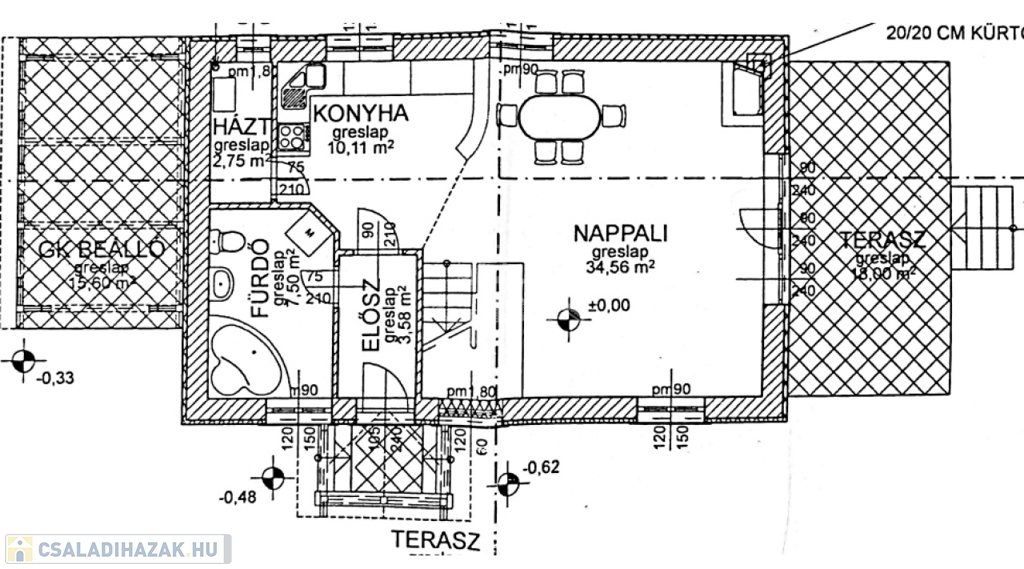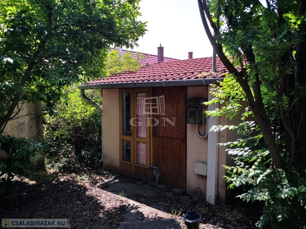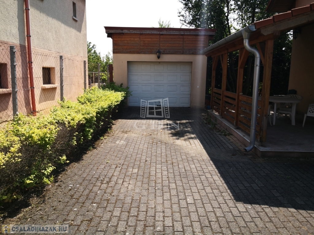 Az 580 négyzetméteres telekre épült ház kertjében egy garázst és egy különálló tároló helyiséget is építettek.