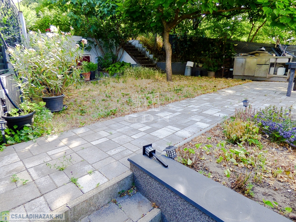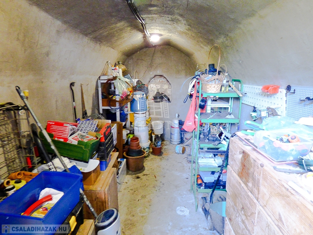 A zárt udvaron 2 autóval meg lehet állni, a kertben egy nagy terasz (25 nm), boros pince (8nm), tároló, bográcsozó kapott helyet.