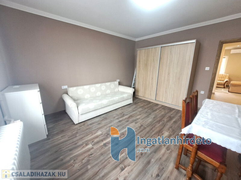 Elhelyezkedése: Belterület Tájolása: Dél-keleti tájolású Állapota: Használt - felújított Komfort besorolása: összkomfortos Építési éve: 1978 Alapterülete: 108 m2 Telekterülete: 4 304 m2 Szobák száma: 3szoba Felújított: Felújított Felújítás éve: 2024 Felújítás során elvégzett munkák: Festés, Villanyrendszer csere, Vízrendszer csere, Fűtésrendszer csere, Csempe csere, Járólap csere, Parketta csere, Fűrdőszobai szaniterek cseréje, Belső átépítés Közművek: Gáz, Víz, Villany Gázellátás: Vezetékes Vízellátás: Vezetékes víz Melegvíz-ellátás: Gázkazán, Villanybojler Áramellátás: 230V Fűtés módja: Gáz Fűtés típusa: Cirkó Homlokzat állapot: Jó Építési mód: Tégla Tető formája: Magas Tető anyaga: Cserép Parkolási lehetőség: Garázsban Kilátás: Utcafronti kilátás Jellemzői: Légkondicionáló, Étkező, Amerikai konyha, Kert, Kerítés, Kapunyitó automatika Energetikai besorolás: G Egyéb jellemzők: Melléképület, Pince Tv, Internet: Kábeltévé, Internet Közelben: Bolt Terhelések: Tehermentes ingatlan Eladásra vonatkozó információk: Azonnal beköltözhető