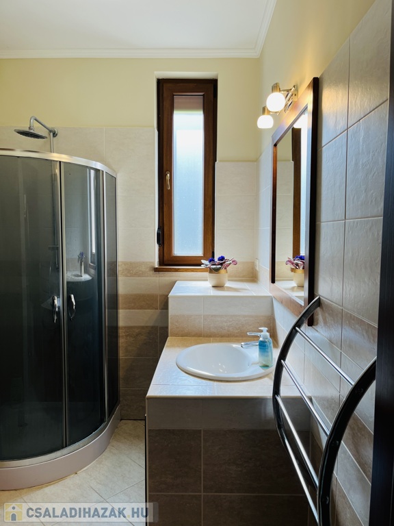 Fűtés: kôburkolat alatt mindenhol padlófûtès,fürdôkben+ törôlközôszàrító fûtèssel kiegèszülve,szobàkban radiàtor àllítható hôfokszabàlyzóval.Kombi cirkó+ melegvíz tàrolàsàra puffer tartàllyal.