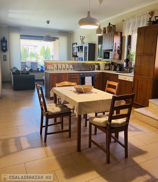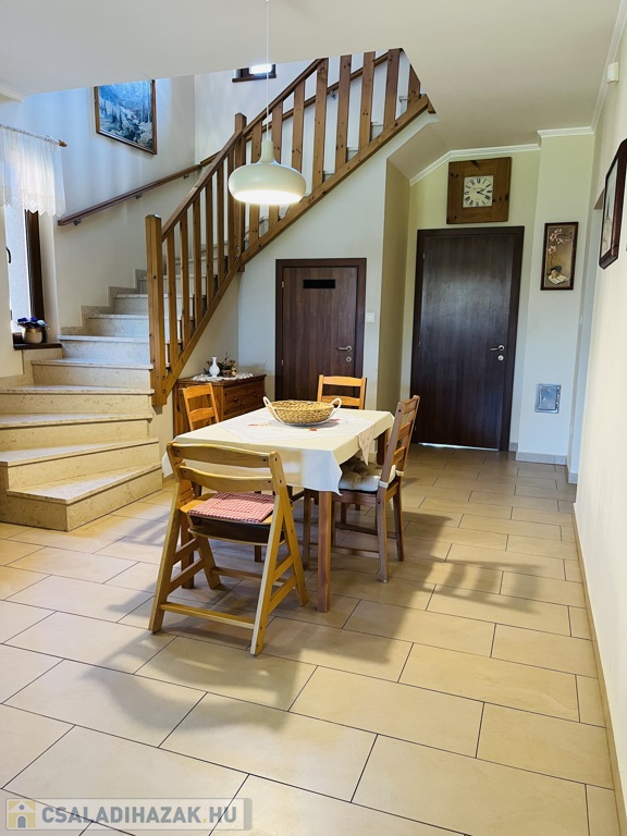 •Ètkezô-konyha-nappali(innen vezet a mèszkôbôl kèszült lèpcsô az emeletre,amely alatt bepolcozott spàjz került kialakítàsra)