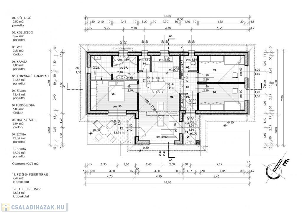 „B” épület: Nettó alapterület :90,78 m² | Terasz 13 m² | Telek ~700 m² | Vételár(bruttó): 90 300 000Ft