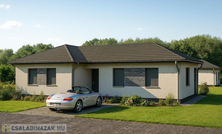 • Épület típusa: egyszintes, 3 hálószoba + amerikai konyhás nappali, terasszal