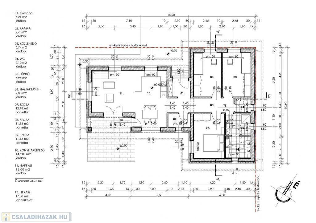 „A” épület: Nettó alapterület :93,26 m² | Terasz 17 m² | Telek ~700 m² | Vételár(bruttó): 93 450 000Ft
