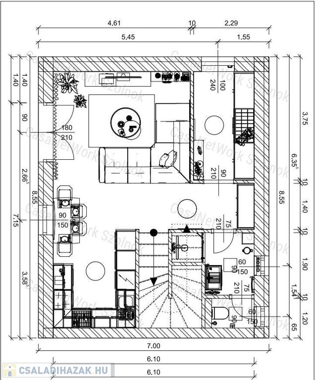 - belső kétszintes elrendezéssel