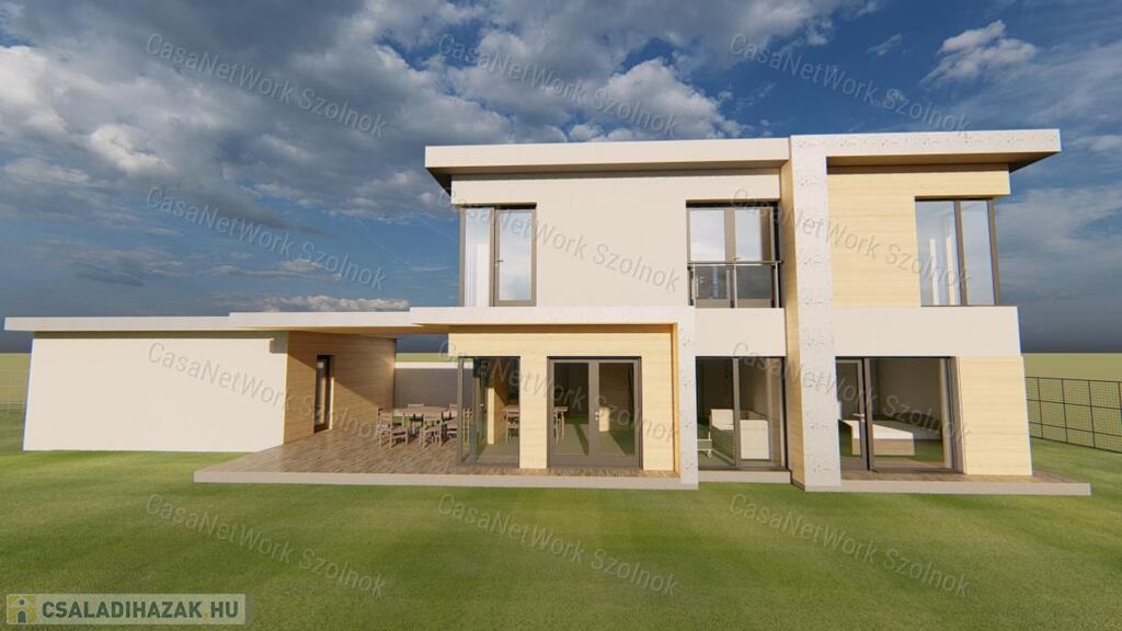 - kétszintes, tégla építésű családi ház 130 m2 alapterülettel, 20 m2 terasszal és 36 m2 garázzsal