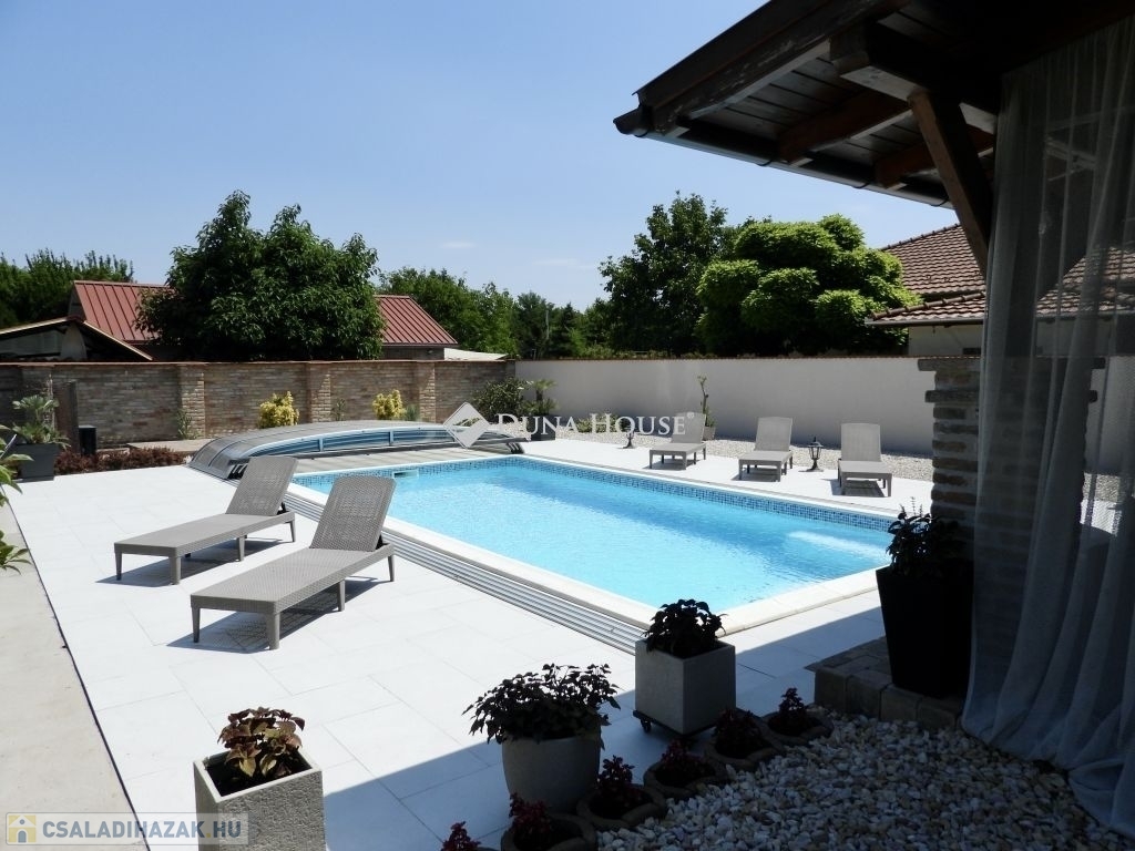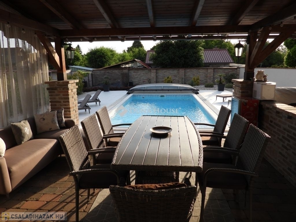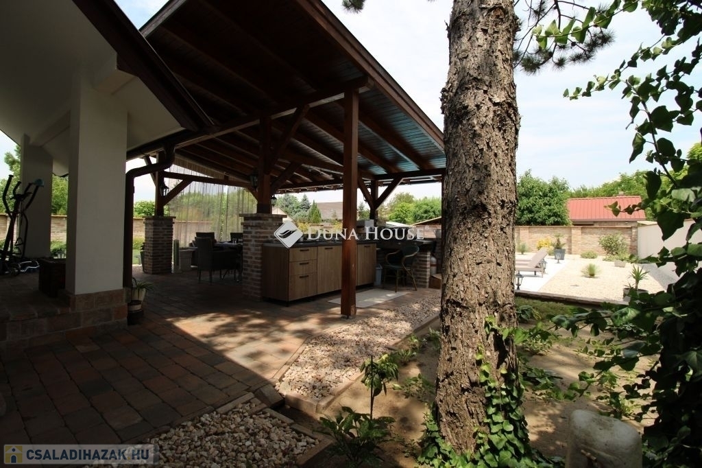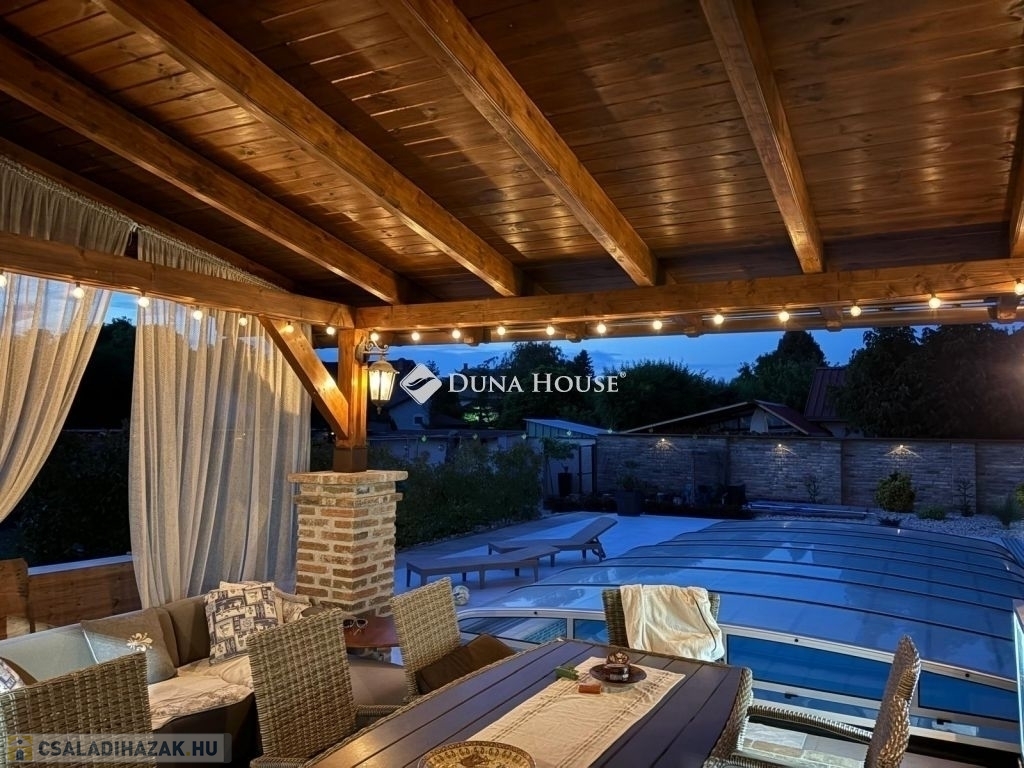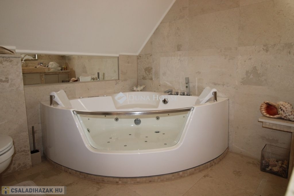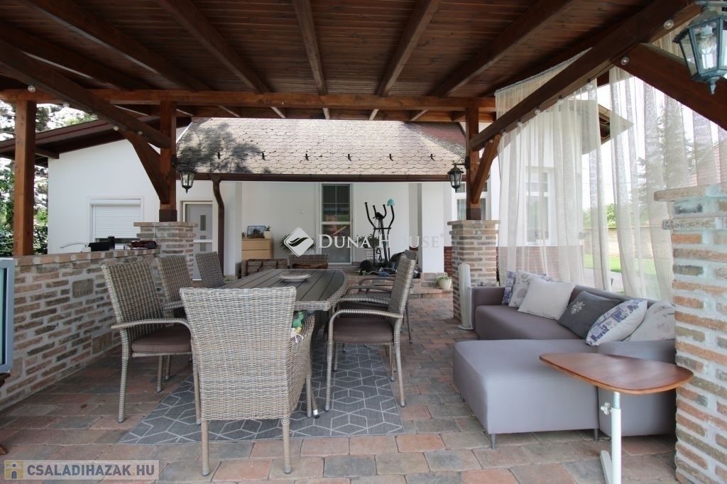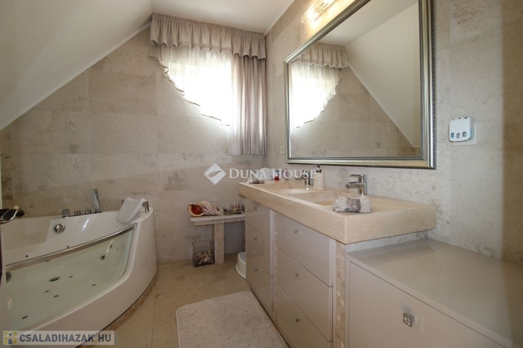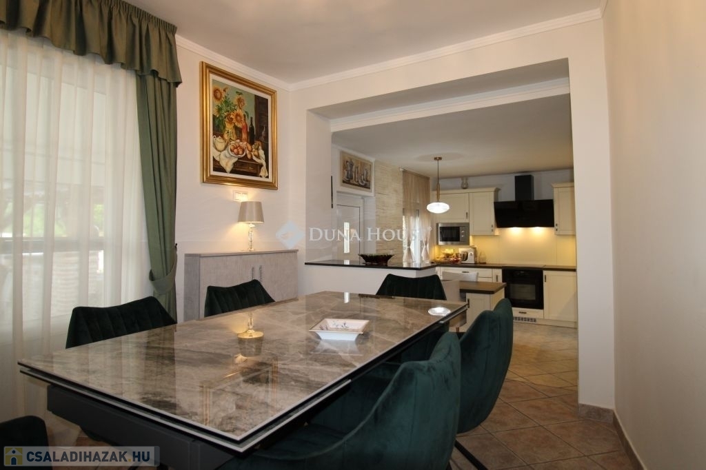 Csendes, zöldövezeti környezetben kínáljuk ezt a 150 m²-es, igényes kivitelezésű, 944 m²-es telken álló otthont. A ház elegáns, funkcionalitással és okos megoldásokkal teli: travertin fürdőszobák, márvány kerítéspárkányok, egyedi bútorok, tágas nappali, modern konyha és dolgozószoba várja új tulajdonosát.