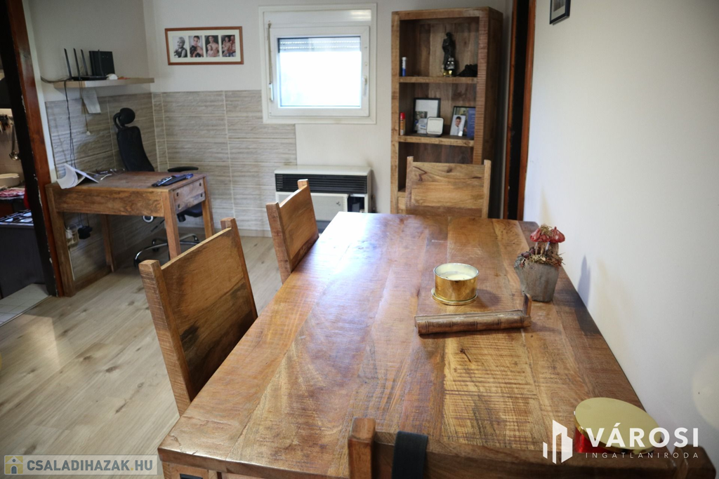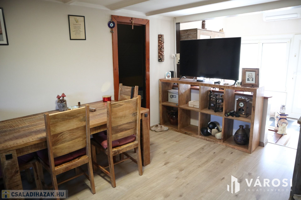 Szatymazon, a Neszürjhegyi részen eladó 75 négyzetméteres, 2020 - ban felújított tégla építésű ház, 1060 négyzetméteres telekkel.
