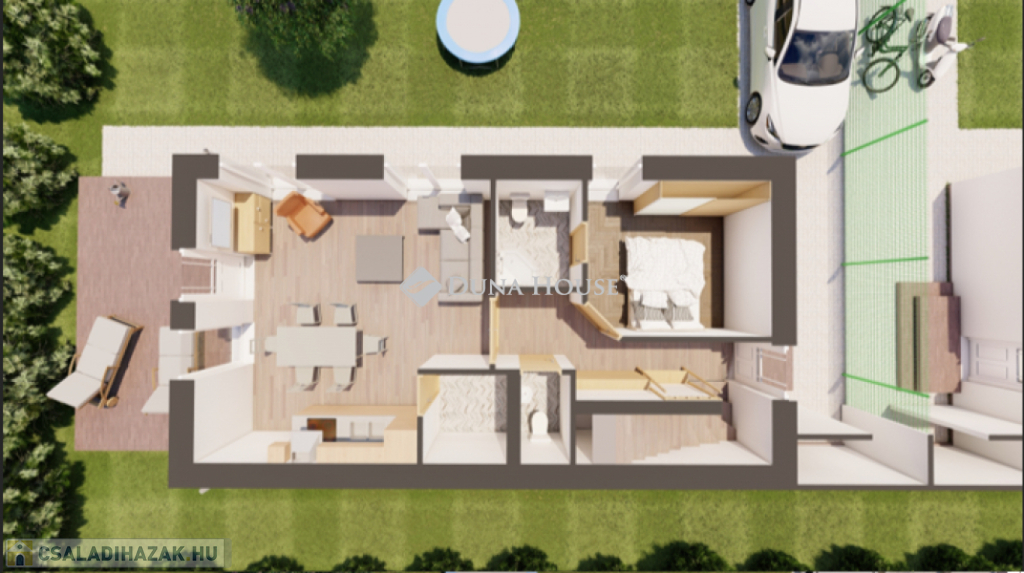 Ajánlom mindazoknak, kik egy nagyobb város külső, igényes részében szeretnének maguknak új, modern otthont. Lévén hogy egymás mellett van két egyforma ház, akár generációk szomszédos összeköltözését is lehetővé teszi, de persze külön-külön is megvásárolhatók.