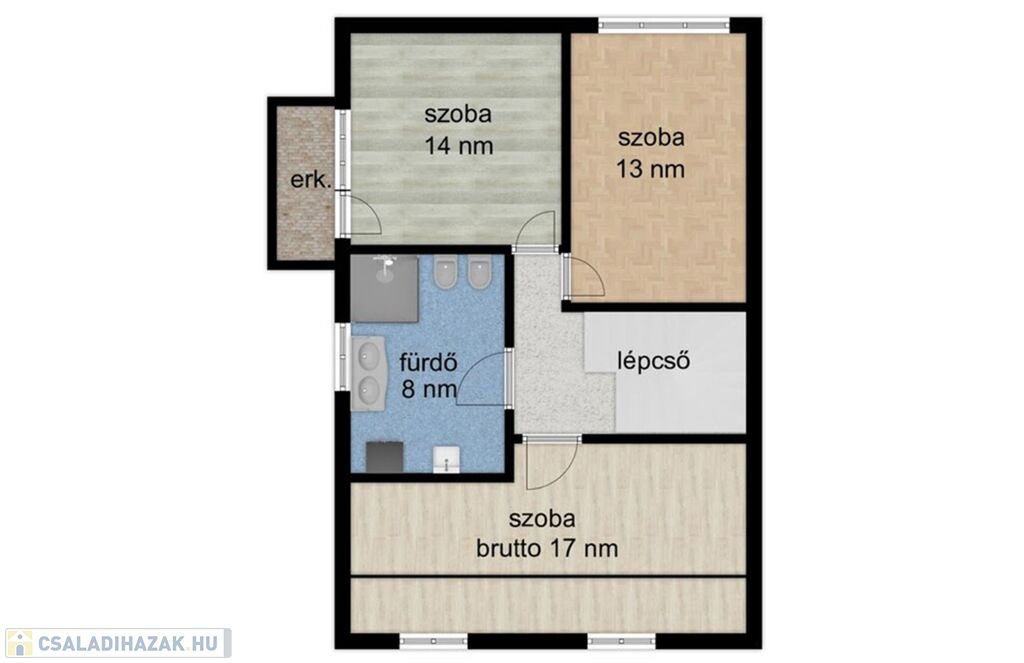 - Nappali kertkapcsolattal, konyha, 4.hálószoba, fürdő, külön WC, kamra, erkély, terasz.
