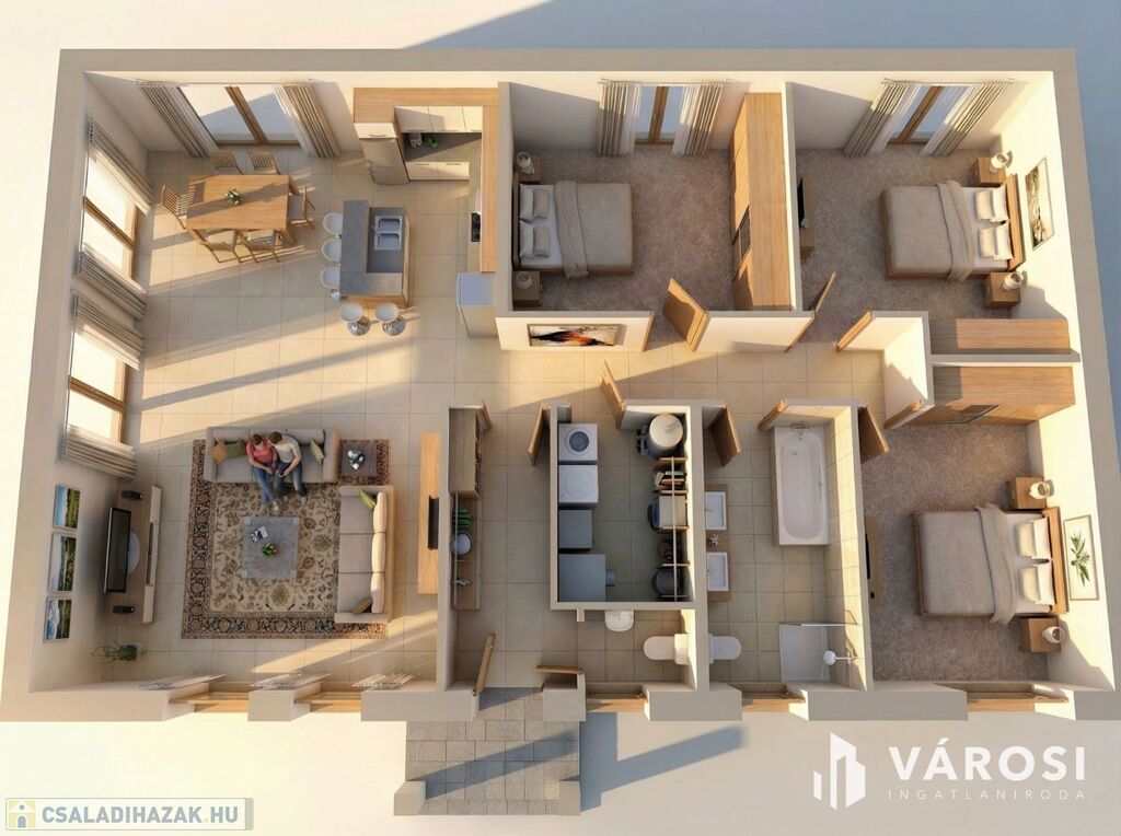 - 102 m2 nettó alapterület, nappali+3 hálószobás elrendezés