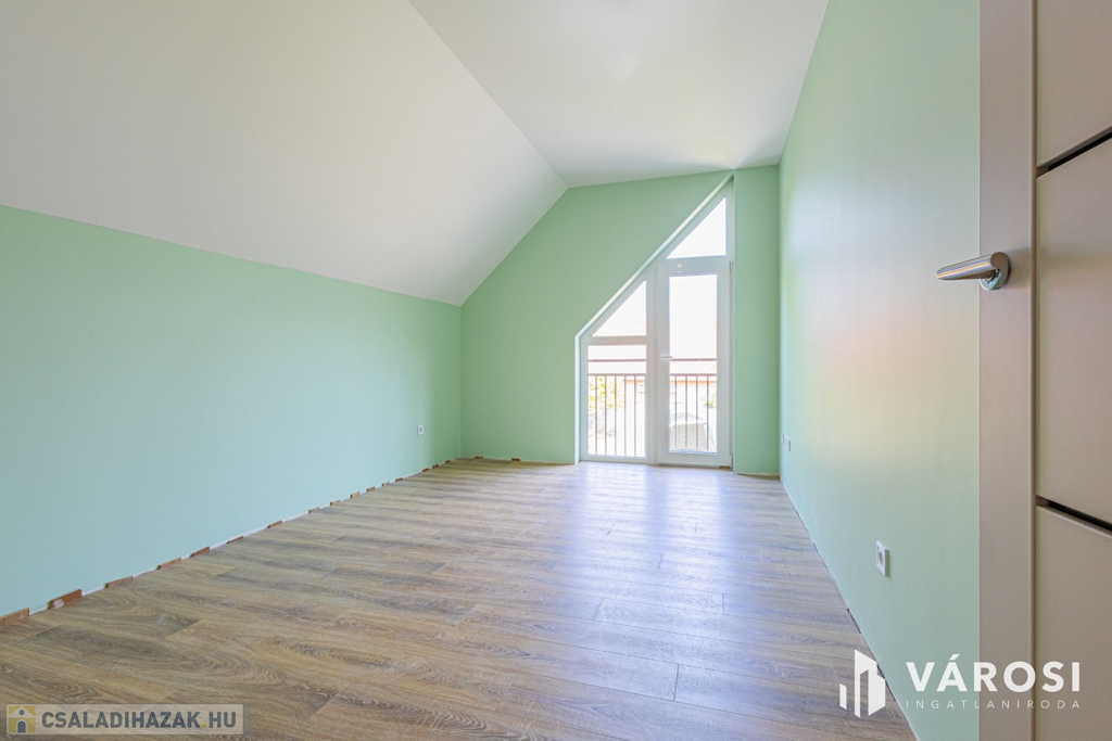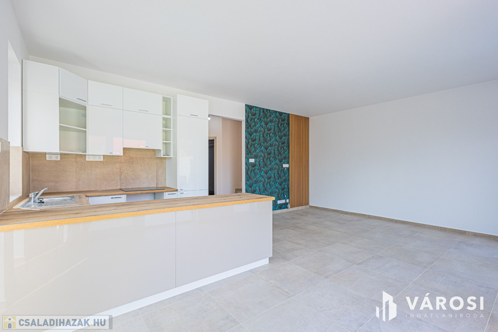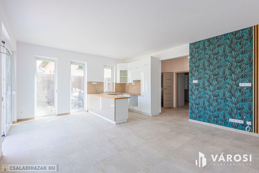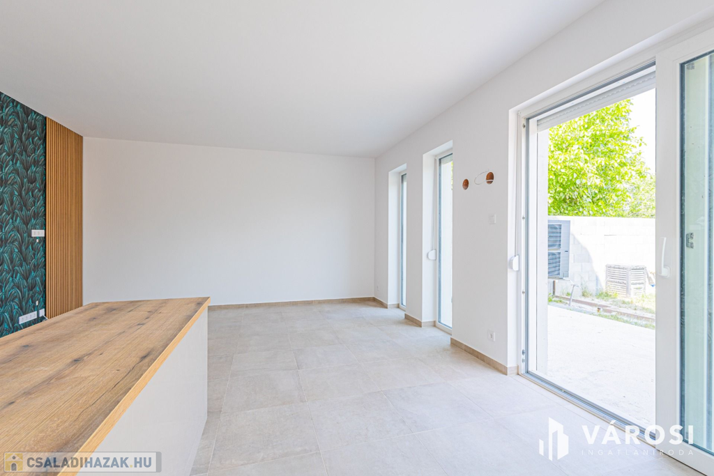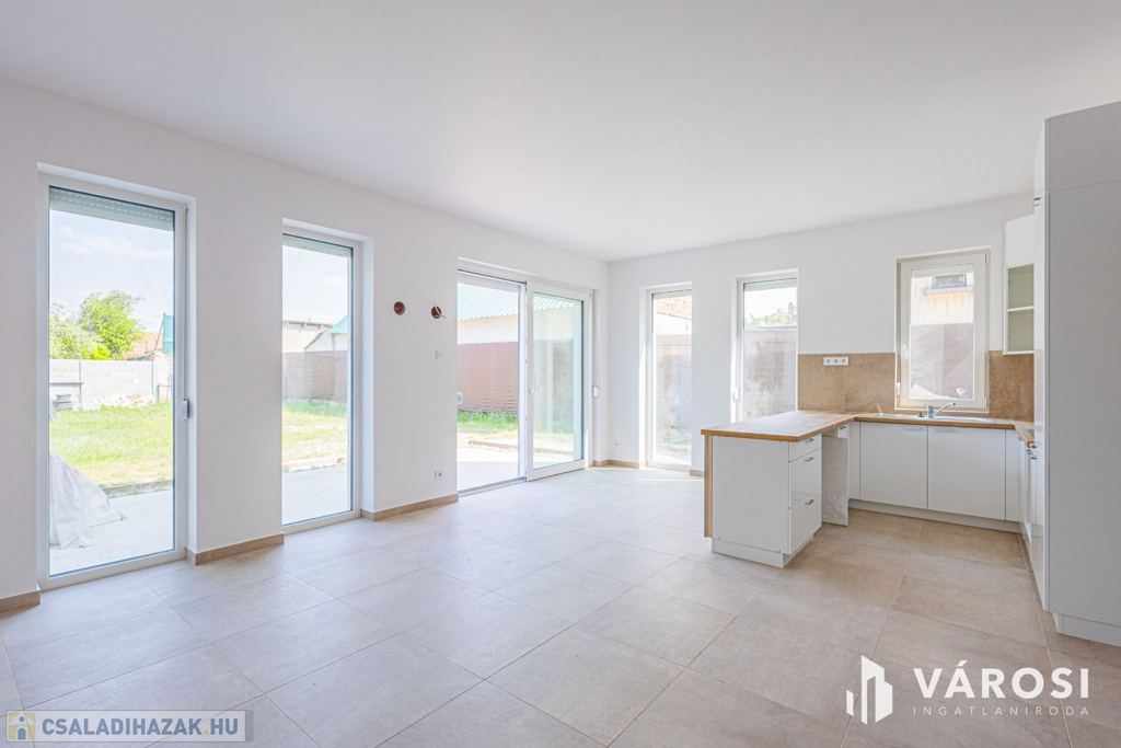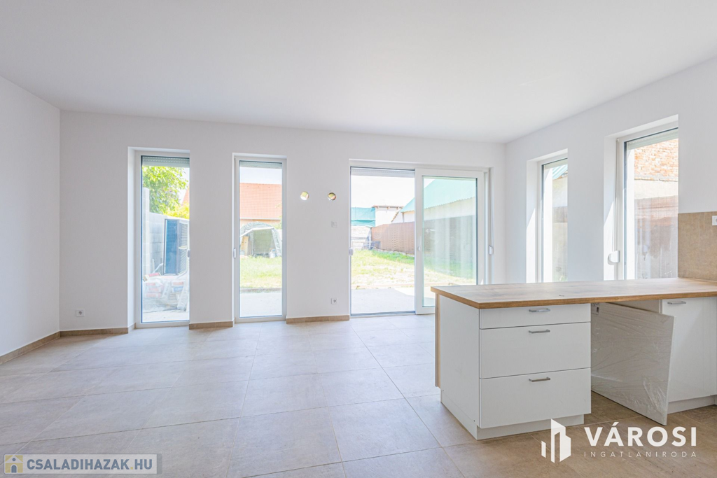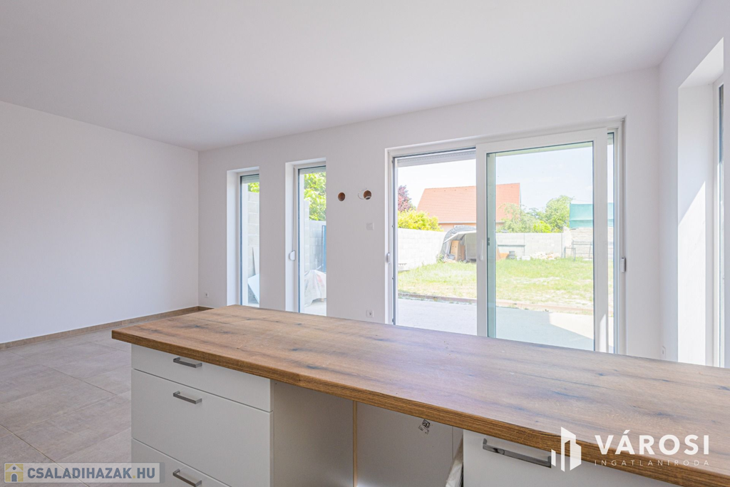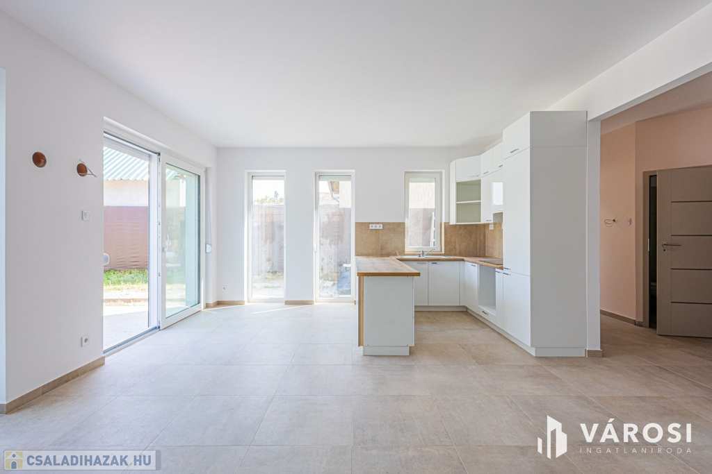 Szeged Kiskundorozsma városrészének csendes - ám központi - utcájában kínálom megvételre ezt a teljesen új építésű családi házat. A jelenlegi fiatal tulajdonosok 2024-ben maguknak vásárolták szerkezetkész állapotban, az ütemterveknek megfelelően haladnak a kulcsrakész befejezéssel, ami néhány héten belül várható. A lakótér cirka 140 négyzetméterén kiváló elosztásban egy amerikai konyhás nappalit és 4 külön hálószobát kapunk a mellékelt alaprajz szerinti elrendezésben. Az átgondolt és esztétikus megoldások az egész otthonra jellemzők. Rezsibiztos megoldásként a padlófűtés és melegvíz rendszert úgy alakították ki, hogy kondenzációs kazánról és hőszivattyúról is üzemelhet. A lakóteret a ház udvarával egy kellemes méretű terasz kapcsolja össze. Autóval garázsban és az udvarban is van lehetőség a parkolásra.