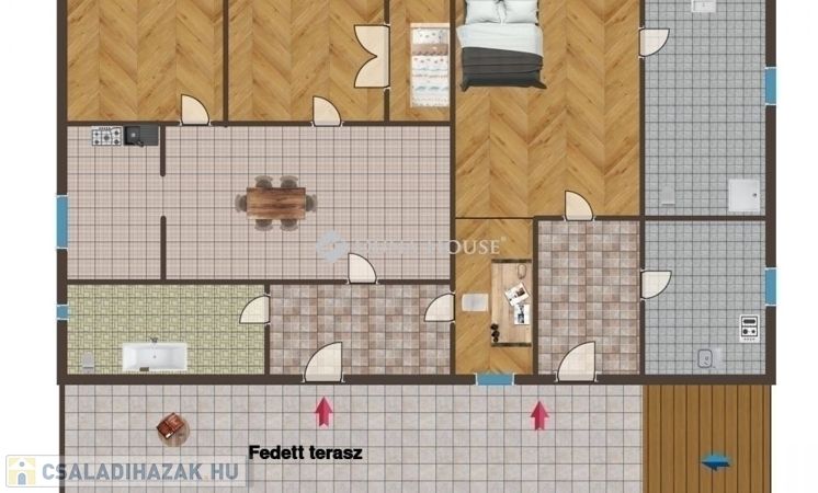 Az ingatlan egyedülálló adottsága, hogy egy házban két külön lakrész található, ezért tökéletes választás azok számára, akik generációkat szeretnének egy fedél alatt, de mégis különálló lakrészben élni, vagy egyszerűen kihasználnák az egyik részt bérbeadásra, hosszú távú befektetésként.