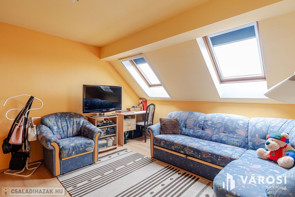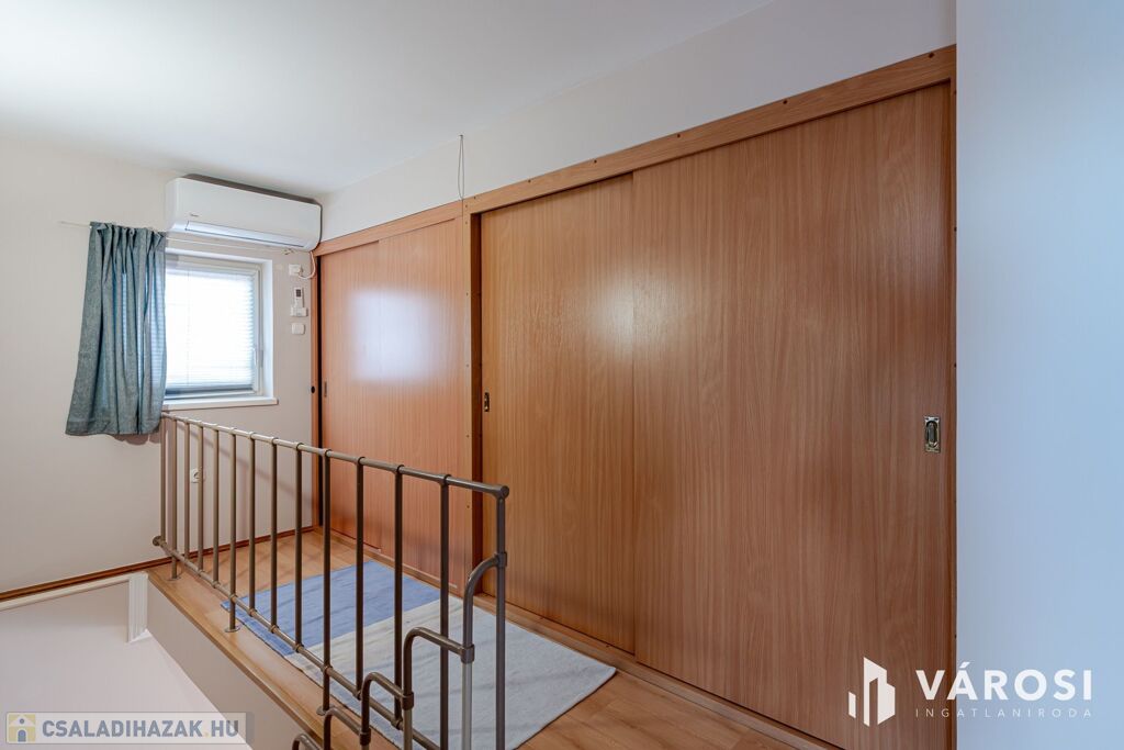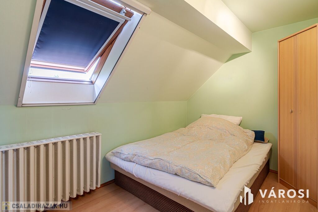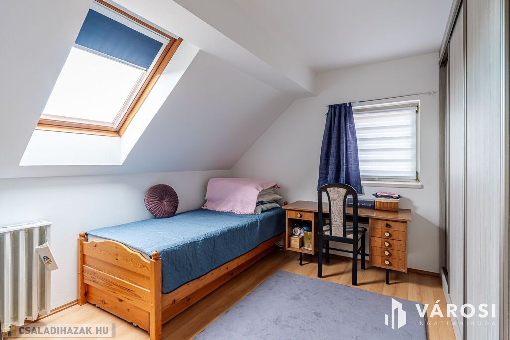 Tetőtér: 3 különálló hálószoba, fa Velux ablakokkal. A galérián beépített gardróbszekrény és egy plusz mosdó növeli a komfortot.