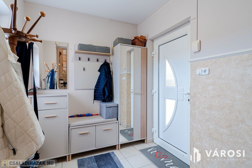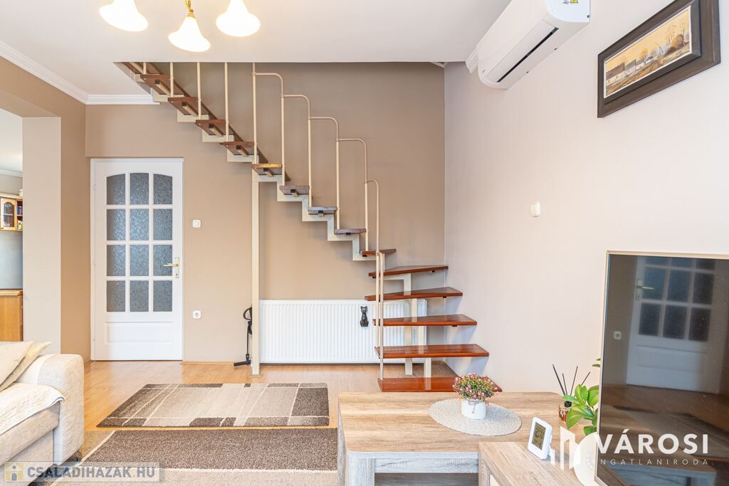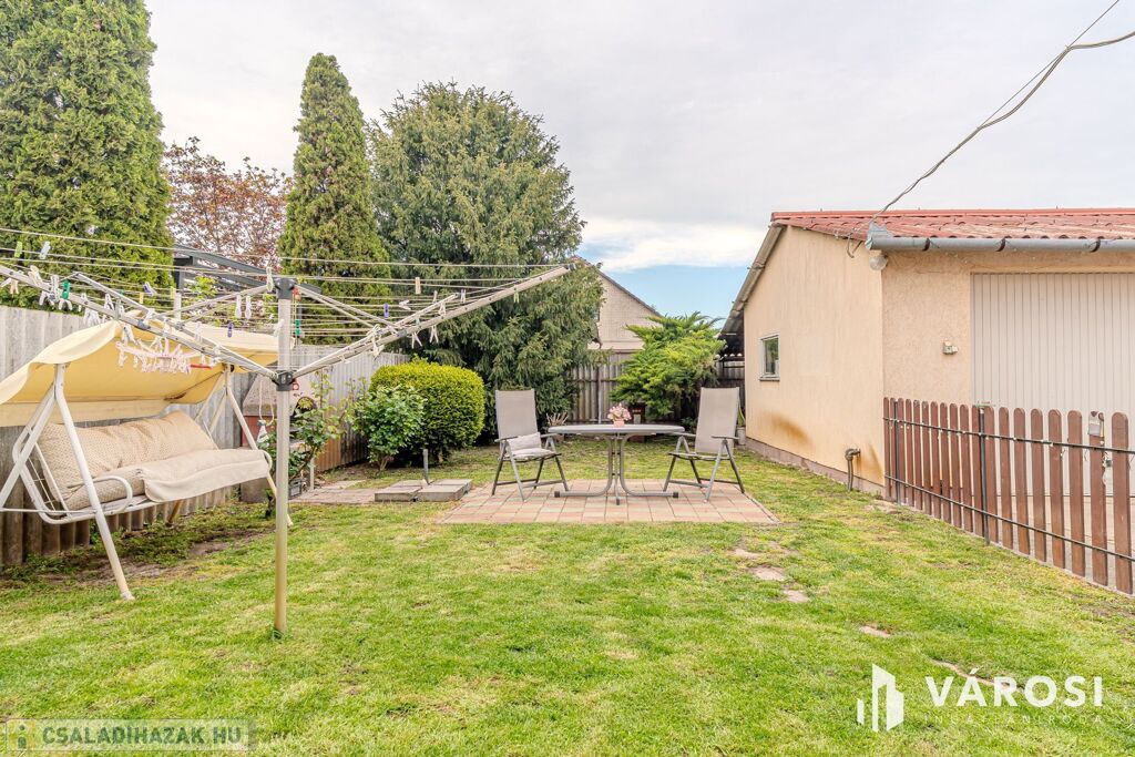 Minden gyalogtávra: iskola, óvoda, játszótér, boltok és buszmegálló. A környék csendes, biztonságos, igazi kertvárosi hangulatú.