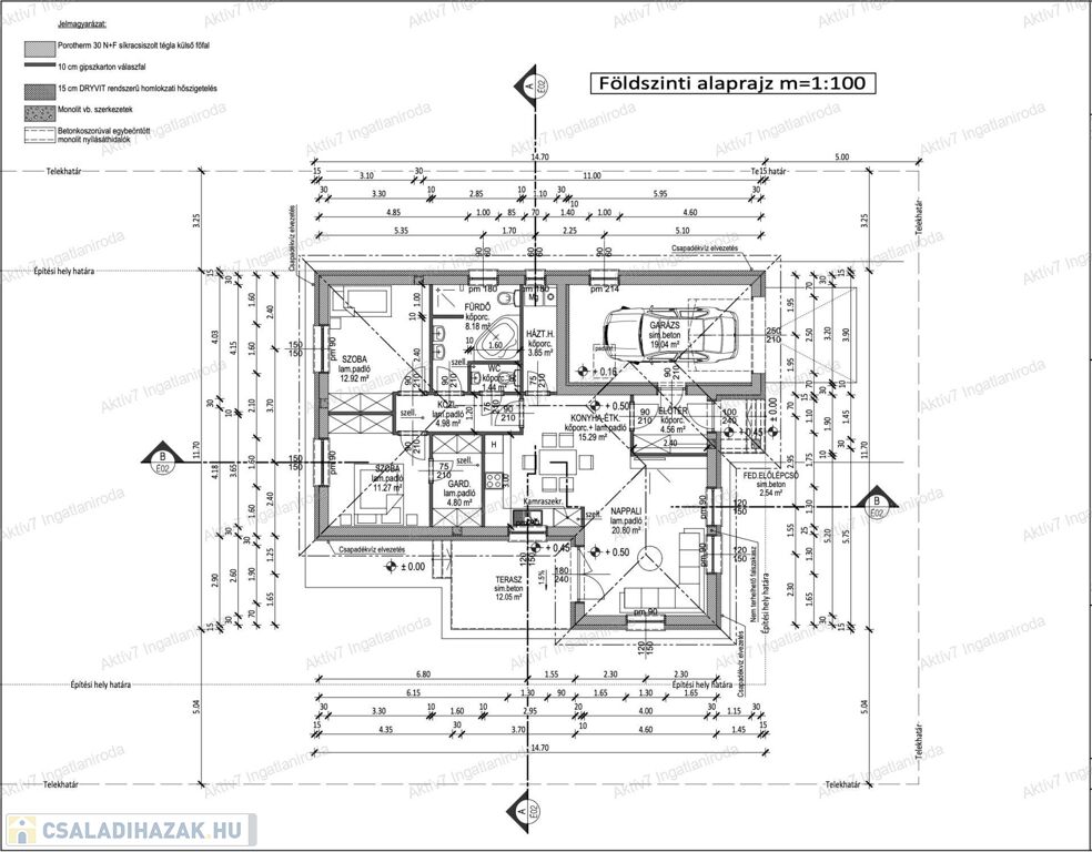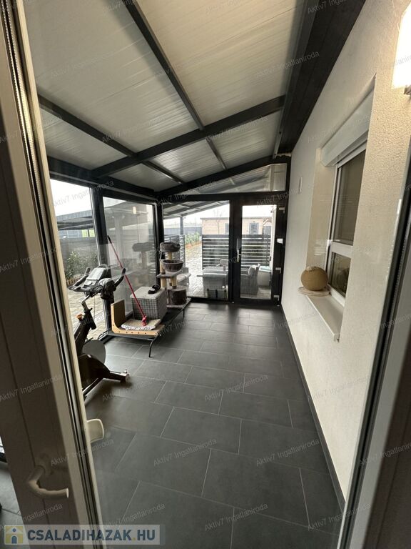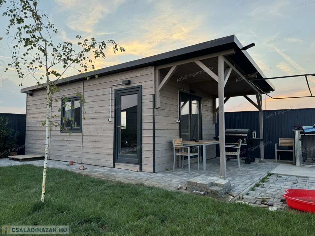 A ház kiváló minőségű, prémium anyagokból készült, és magas műszaki tartalommal rendelkezik. Az 88 m2 alapterületű lakórész elrendezése praktikus: előszoba, amerikai konyhás étkező-nappali, 2 hálószoba, gardrób, háztartási helyiség, vendég WC, valamint egy tágas fürdőszoba káddal, zuhanyzóval és WC-vel. A házhoz tartozik egy 19 m²-es garázs, mely közvetlen bejárással kapcsolódik a lakóterülethez, illetve egy 30 m²-es fedett terasz, mely részben üvegezett, szigetelt, másik része pedig nyitott, autóbeállóval bővítve.