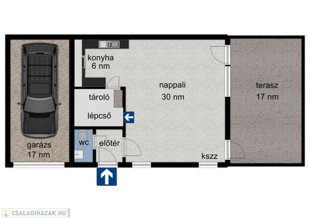 - Nappali, konyha, WC, előtér, terasz,3.szoba, fürdő, erkély, háztartási helyiség, kamra.