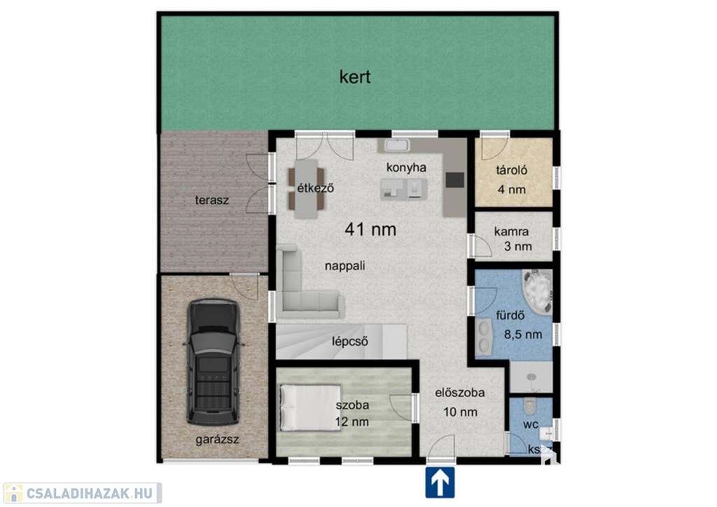 - Egy szoba és egy fürdő a földszinten helyezkedik el!