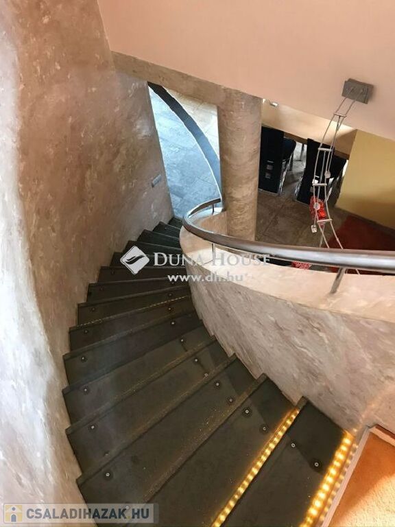 Az alsó szinten belépéskor kellemes belső tér fogad, az előszobából nyílnak a helyiségek. Balra a konyha-étkező, jobbra gardrób, fürdő, mellékhelyiség, mely kézmosóval felszerelt. Az előszobából tovább haladva a rendkívül hangulatos, jó fényviszonyokkal rendelkező tágas nappali tárul elénk, melynek dísze a kandalló. A nappali és a konyha-étkező egy teret alkotnak, mindössze egy oszlop választja el őket. A konyha gépesített, Bosch gépekkel felszerelt. A nappaliból kiléphetünk a fedett - és nyitott teraszra.