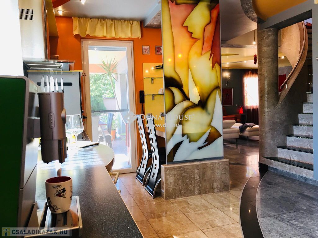 A ház helyiségeinek színvilága, burkolatai a mediterrán stílust képviselik, így együttesen egy nagyon kellemes, otthonos megjelenést sugároznak. A terek felosztása jól átgondolt, ennek köszönhetően nagyon kellemes atmoszférájú az ingatlan.